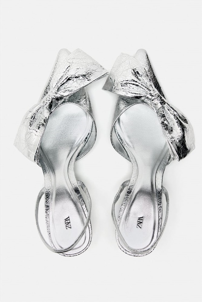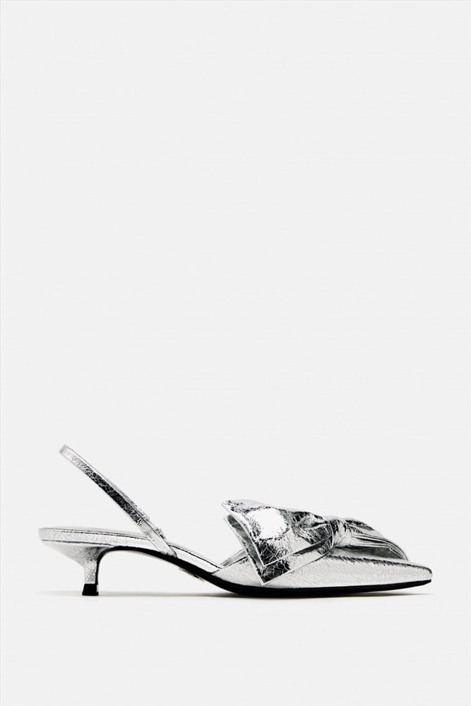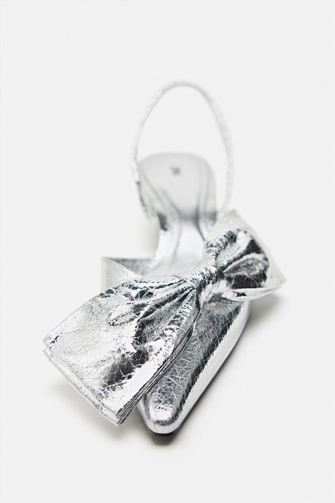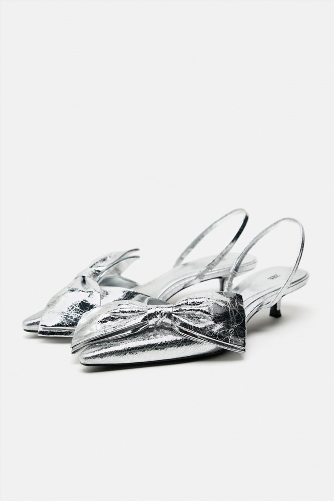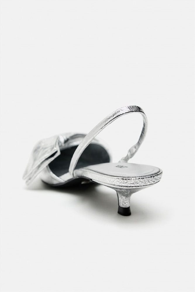 METALLIC KITTEN HEEL SHOES WITH BOW