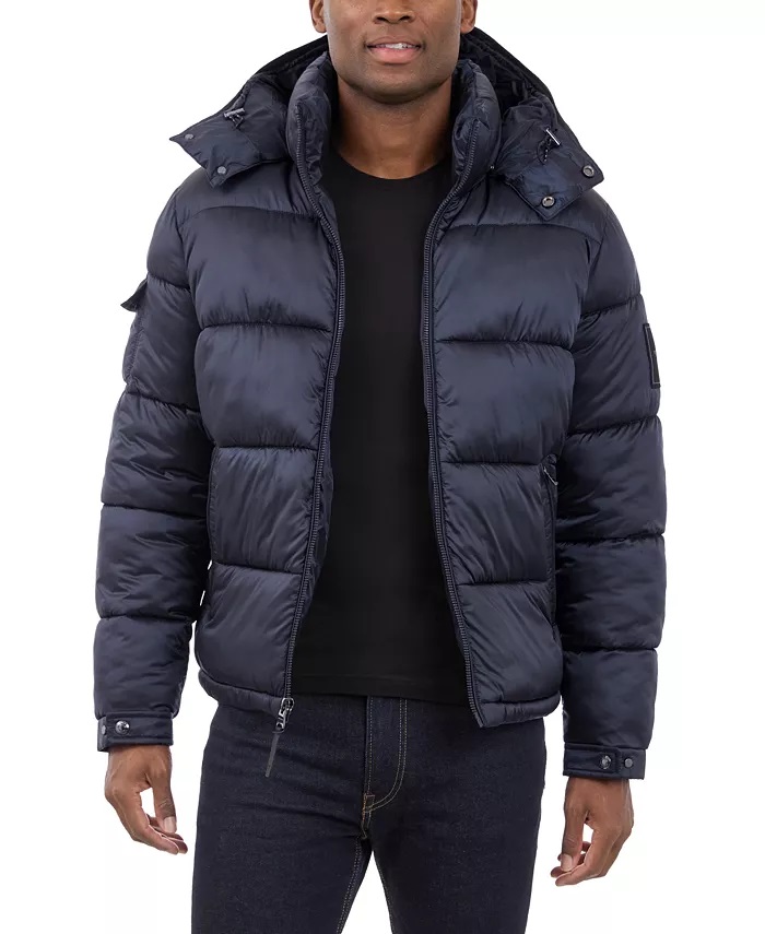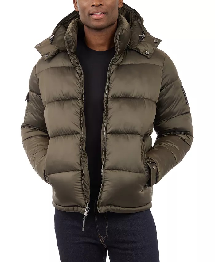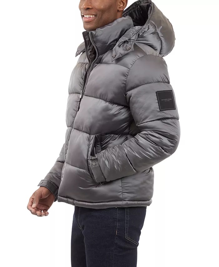 Michael Kors Men's Heavyweight Metallic Finish Hooded Puffer Jacket