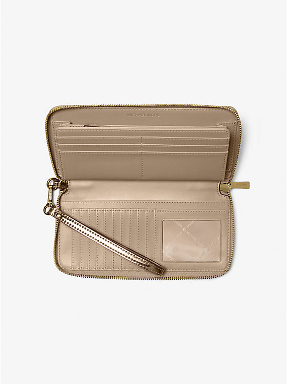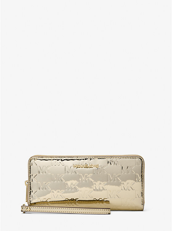 Michael Kors Outlet Jet Set Large Metallic Logo Debossed Continental Wallet