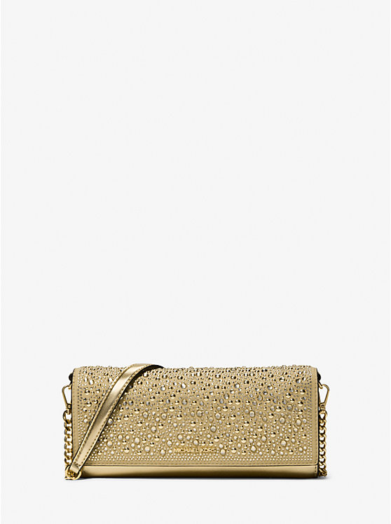 Michael Kors Outlet Jet Set Medium Metallic Leather Clutch