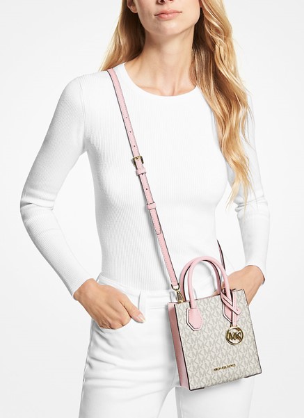 Michael Kors Outlet Mercer Extra-Small Logo and Leather Crossbody Bag