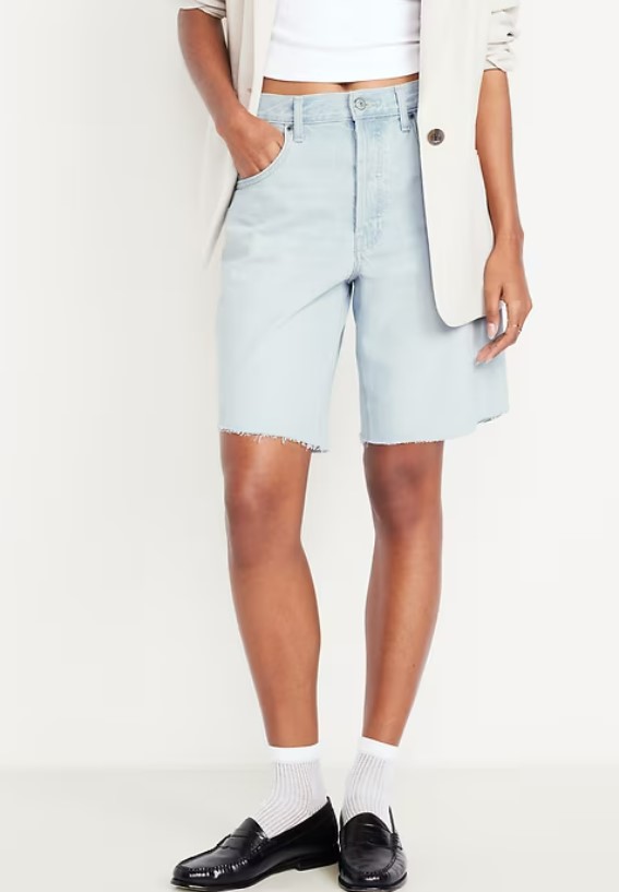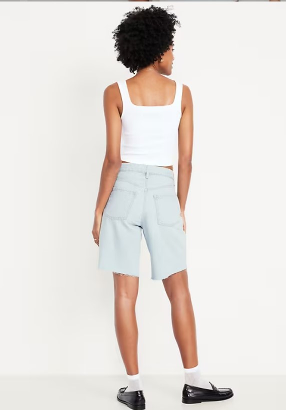 Mid-Rise Baggy Cut-Off Jean Bermuda Shorts -- 9-inch inseam