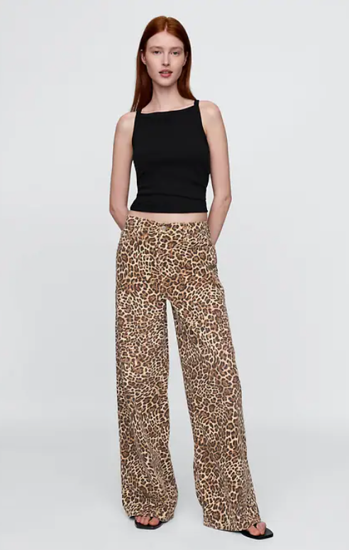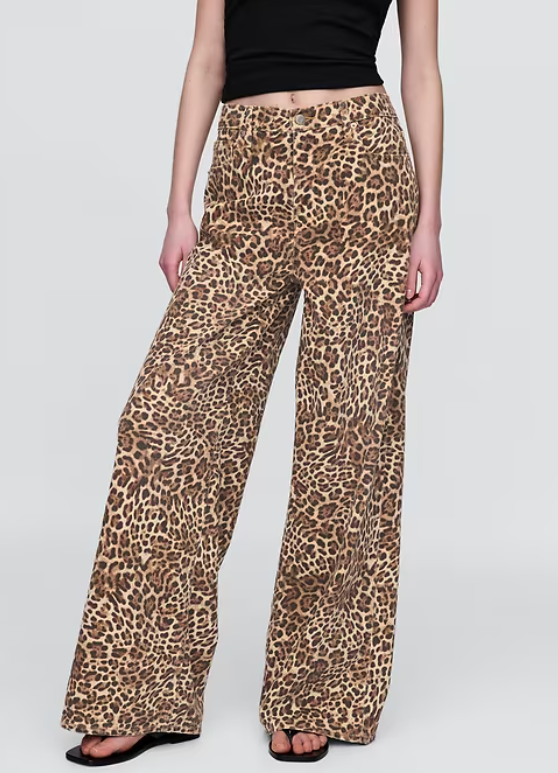 Mid Rise UltraSoft Leopard Baggy Jeans