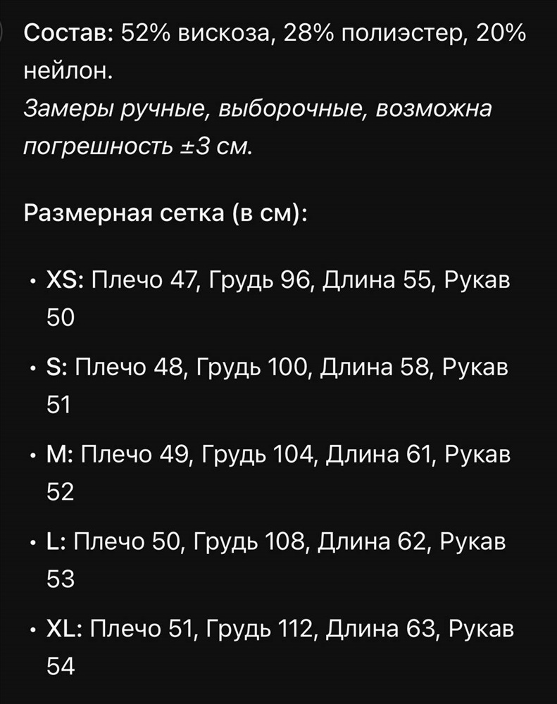 Материал: 53% вискоза 28% полиэфирное волокно 20% нейлон Комментарии к товару