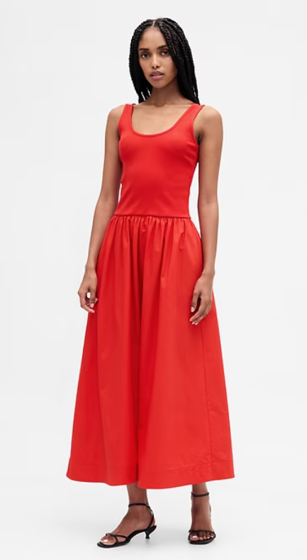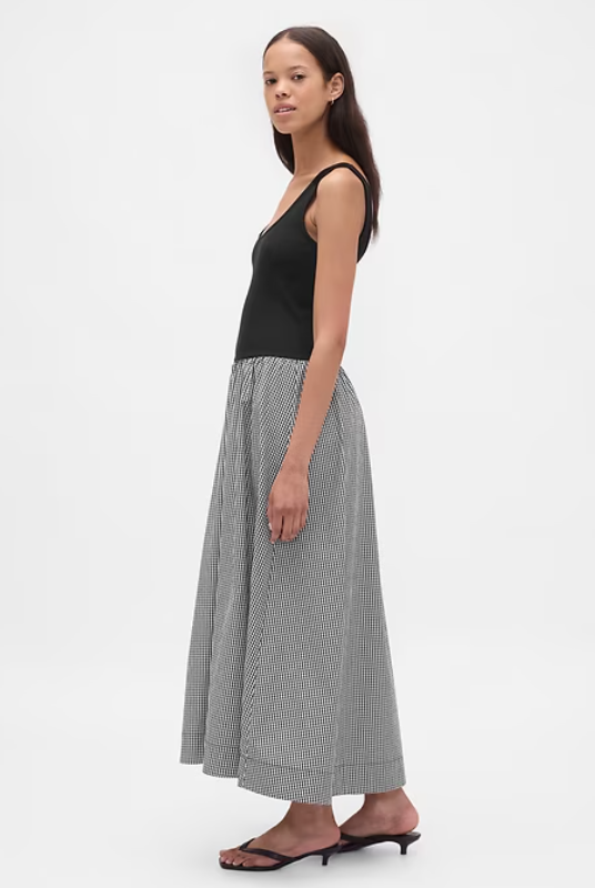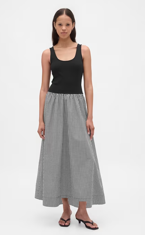 Mixed Media Drop-Waist Maxi Dress