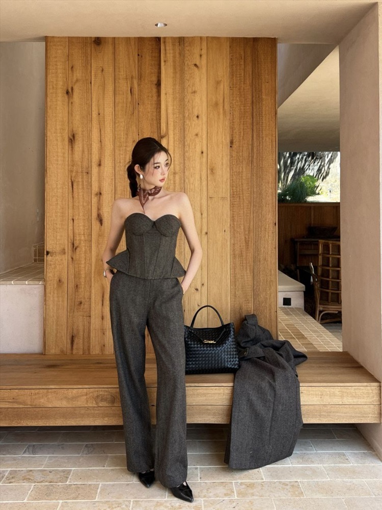 Широкая модель с высокой талией. Плотная текстура, сдержанный роскошный дизайн выглядит потрясающе!