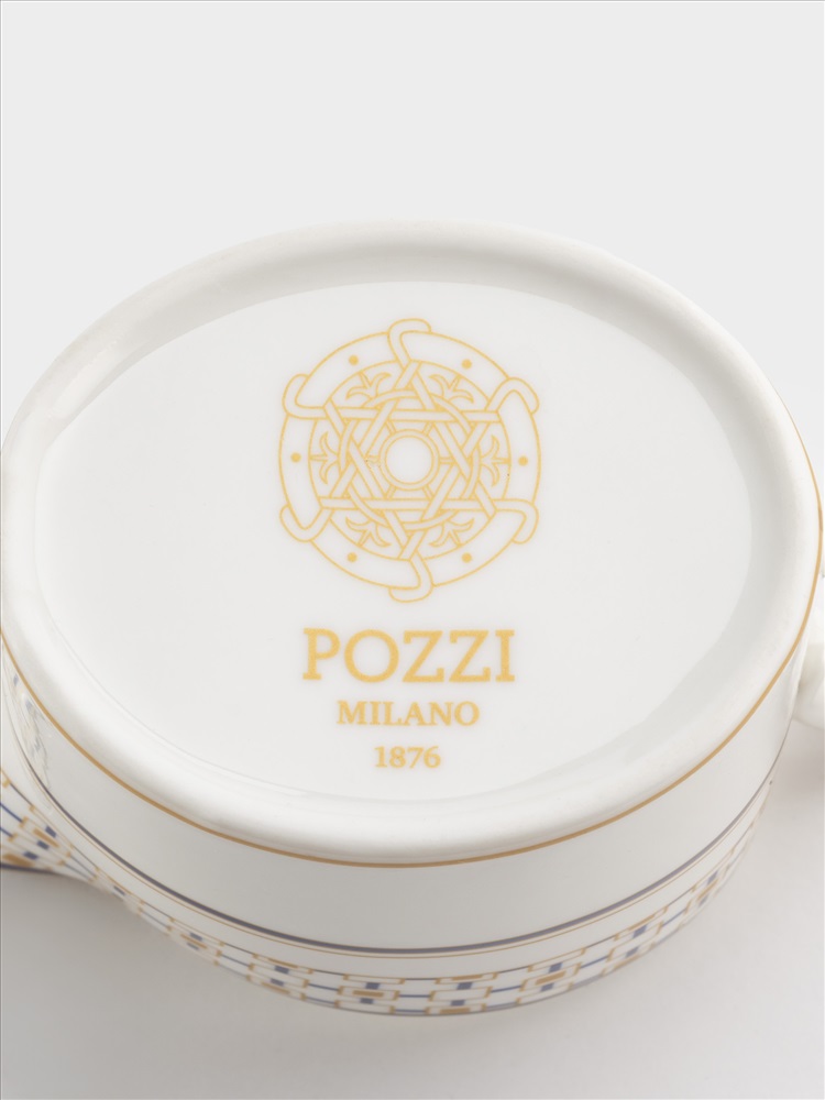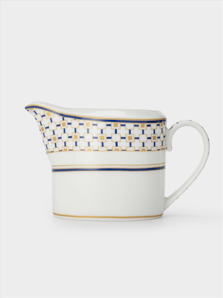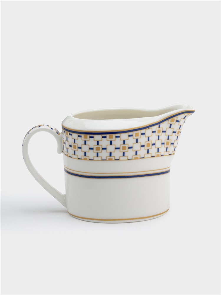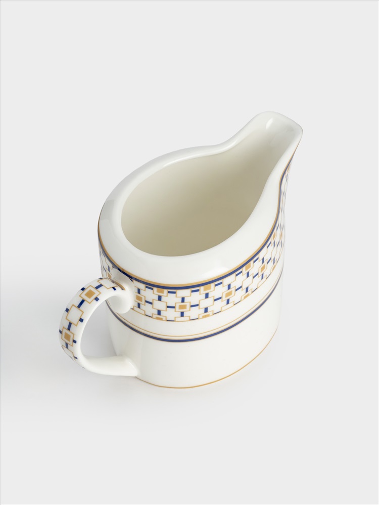 Коллекция: РЕГУЛЯРНАЯ Молочник, 250 мл, фарфор N, бело-синий, Квадраты, с золотистым кантом, Charles. Материал: фарфор New Bone China. Мыть тёплой водой с применением ЖМС. Можно использовать в СВЧ и посудомоечной машине.