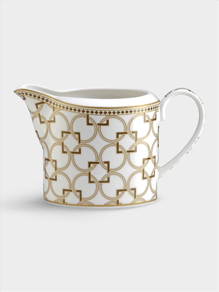 Молочник, 250 мл, фарфор N, бело-бежевый, Круги и квадраты, с золотистым кантом, Deco. Материал: фарфор New Bone China. Мыть тёплой водой с применением ЖМС. Можно использовать в СВЧ и посудомоечной машине.