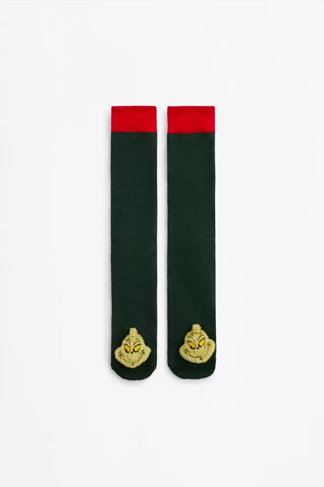 Mujer | Caja calcetines 3D El Grinch Рождественская коробка с парой женских носков с мягкой плюшевой аппликацией от The Grinch TM &