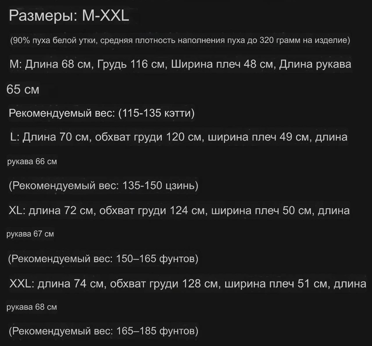 Размеры: M-XXL