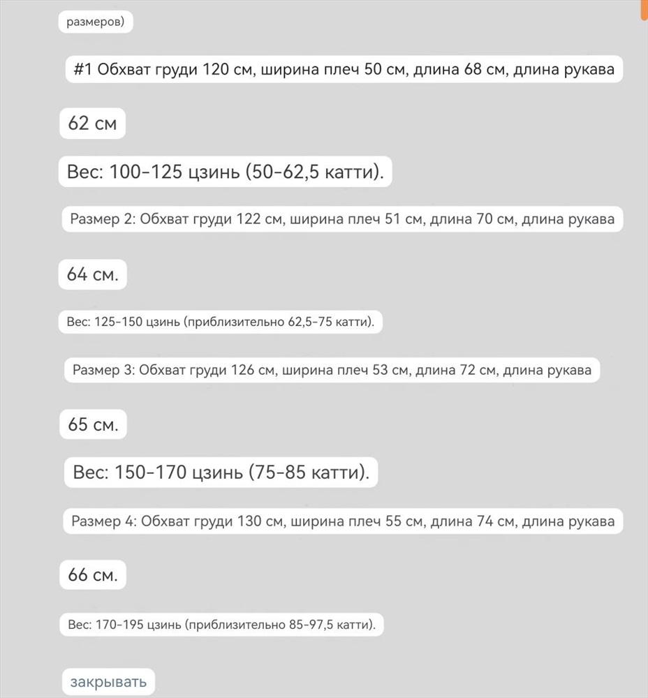 ПРЕЖДЕ, ЧЕМ СДЕЛАТЬ ЗАКАЗ, ОБЯЗАТЕЛЬНО ПРОЧТИТЕ ПРАВИЛА ЗАКУПКИ! Ваше участие означает согласие со всеми стандартными правилами для Участников на этом форуме и с правилами конкретно этой закупки. Наша группа в Telegram. Присоединяйтесь! УСЛОВИЯ ВЫКУПА: Орг. сбор 19% Минимальная сумма совместного заказа: 15 000 руб. Доставка Китай - Краснодар 13$/кг (тару делю на всех) Срок доставки 4-6 недель (точные сроки доставки зависят от загруженности таможни) Оплата в течении 1-2 дней после выставления счета При несвоевременной оплате большая вероятность того, что товар будет раскуплен (КОЛЛИЧЕСТВО ТОВАРА В ЭКСПОРТНЫХ МАГАЗИНАХ ОГРАНИЧЕНО) ОПЛАТА ТРАНСПОРТНЫХ РАСХОДОВ 1.Стоимость доставки рассчитывается по приходу заказа, после взвешивания. 2. В случае неоплаты транспортных расходов заказ не выдается и приводит к ограничениям на участие в закупках 3 Оплата двое суток переводом на карту, на третьи сутки орг поднимается до 30%, далее участник попадает в ЧС. 4. Если Вы сами находите товар на сайтах taobao.com, 1688.com, pinduoduo, wechat присылайте мне ссылку, цвет, количество, стоимость и я все для вас выкуплю. Важно! Пересорт или брак: не является причиной для возврата товара Если вам не подошел размер, не понравилось качества материала и тд. - не является причиной для возврата товараТочные сроки доставки зависят от загруженности таможни! |