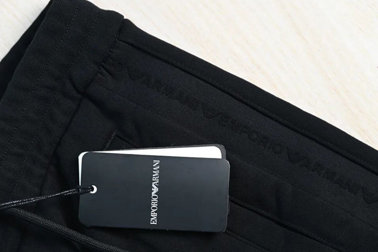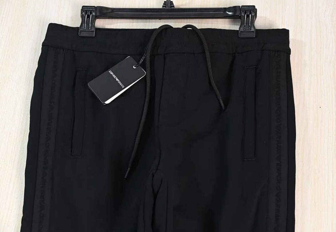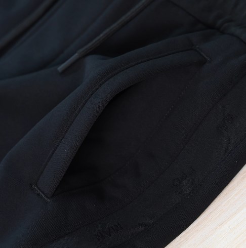 Тонкий флис с ощущением толщины Полоски с буквами отделывают боковые стороны штанин. Ткань слегка тянется.