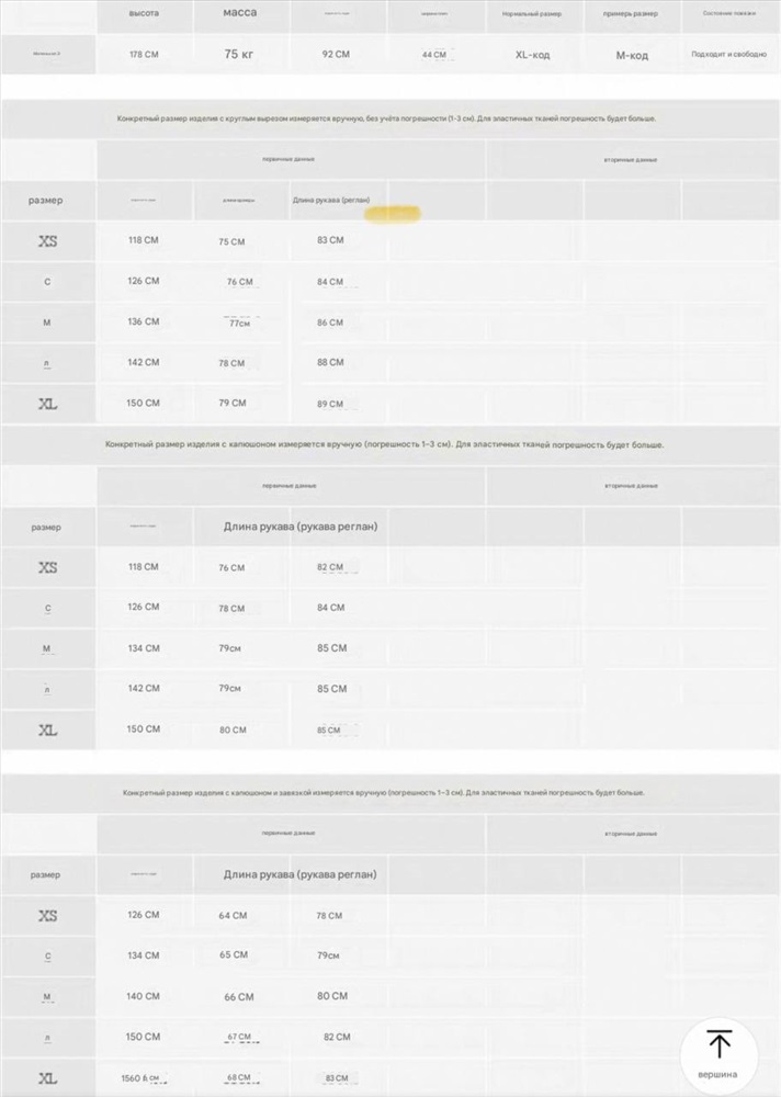 Размеры: от XS до XL