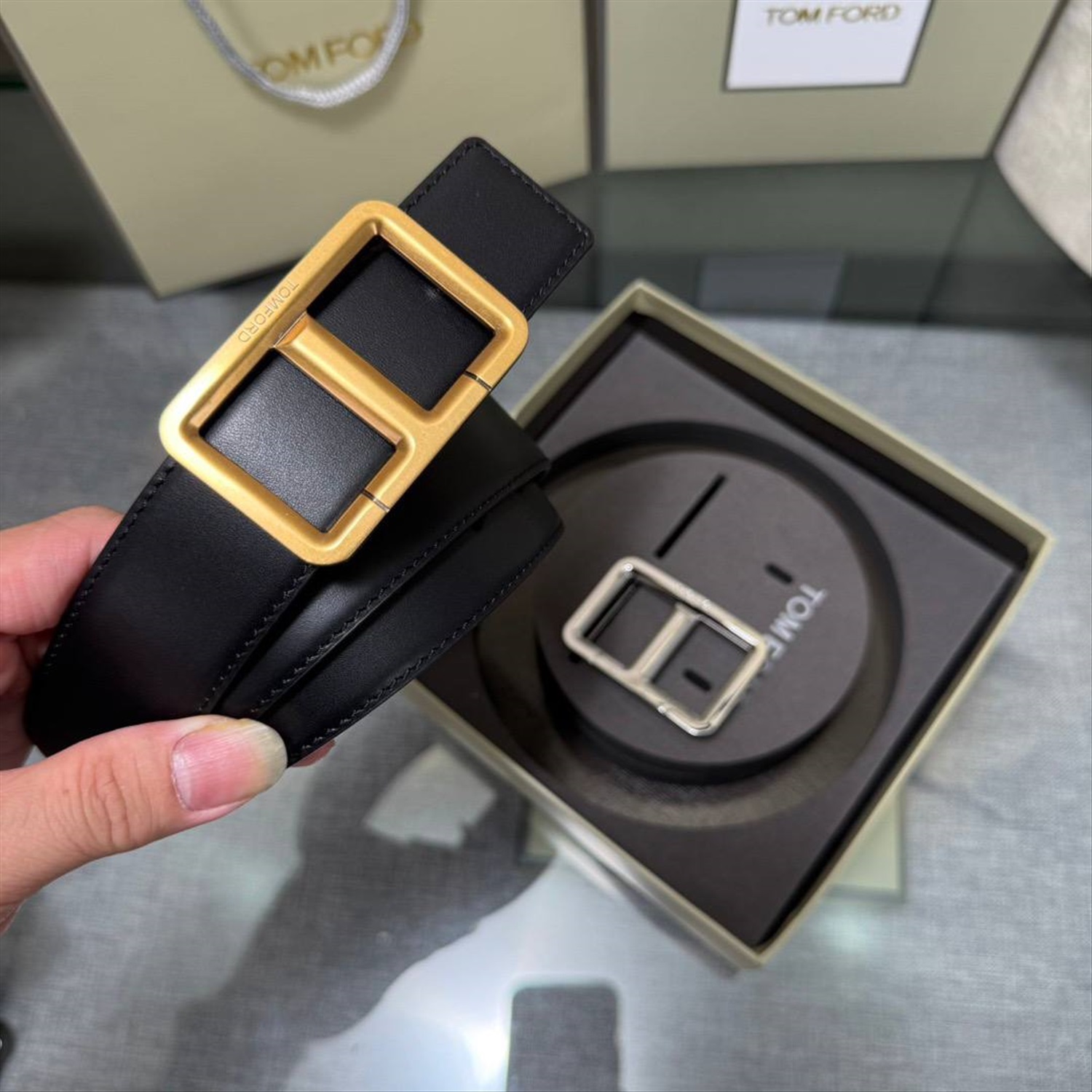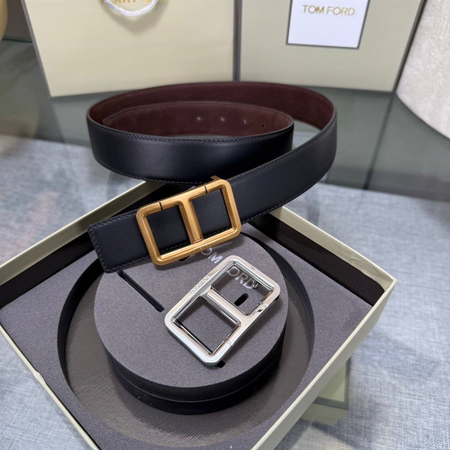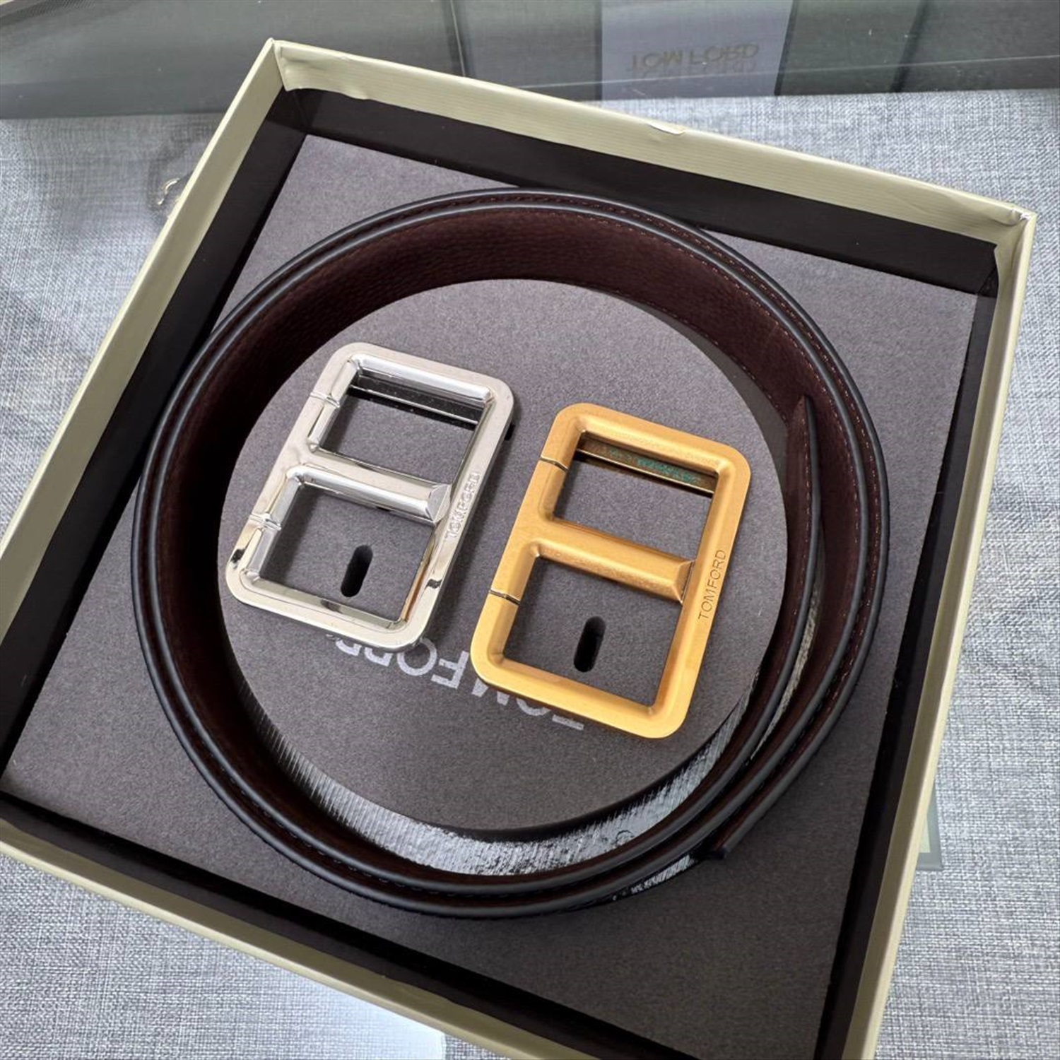 Мужской двухсторонний ремень с двумя пряжками ТОМ ФОР*Д