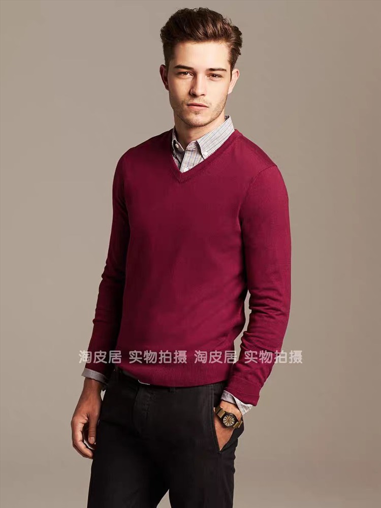 Мужской классический пуловер с V-образным вырезом горловины Banan*a Republi*c