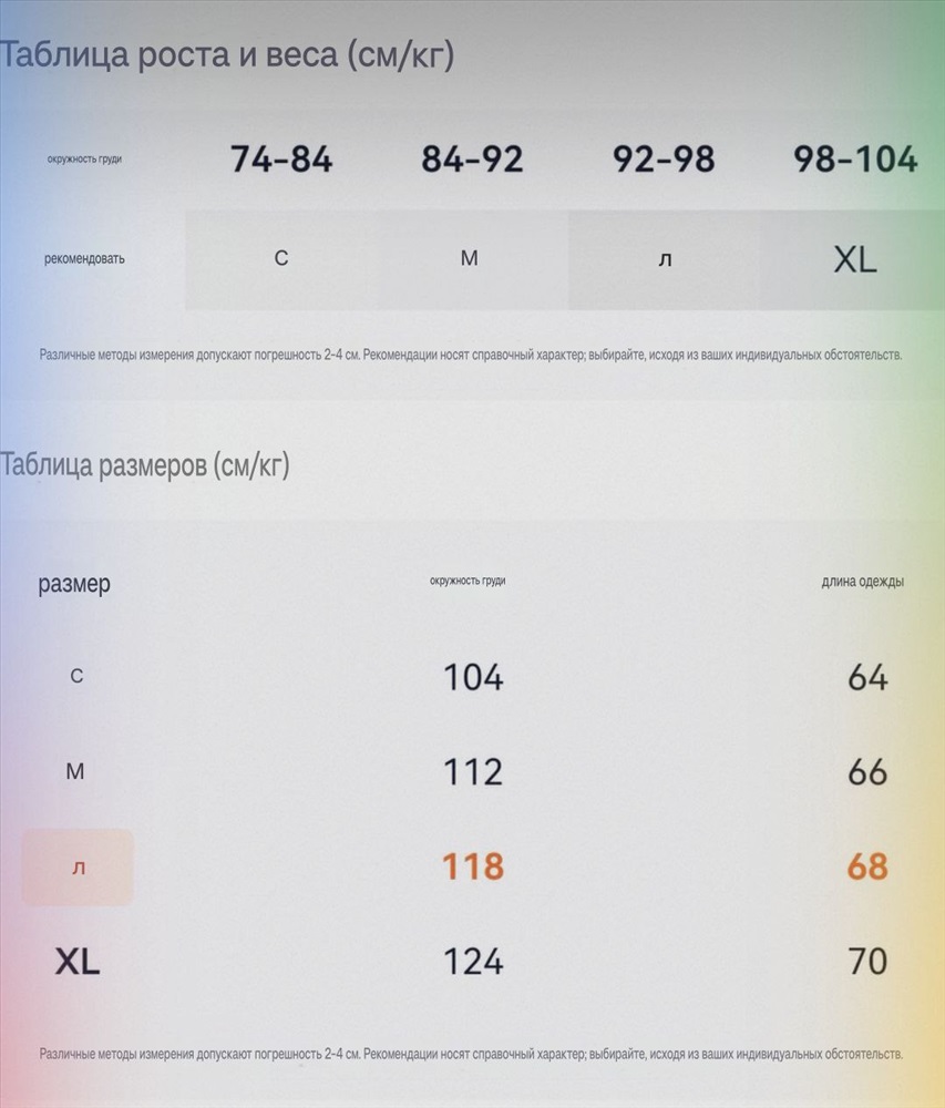 Размеры: S M L XL