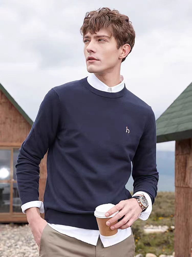 Мужской зимний простой повседневный свитер Hazzys, базовый свитер-кардиган, идеальной толщины, классический и универсальный стиль каждый год! Самый классический пуловер с круглым вырезом, плетение с узором ананаса, более объемный вид. Фирменная вышивка на груди изысканная и насыщенная. Все ткани изготовлены из импортных смесей шерсти, которые приятны для кожи, нежны и очень удобны при ношении рядом с телом. Они идеально сохраняют тепло. Они очень высокого качества, подходят для любой возрастной группы и выглядят! как мужчина с хорошо подогнанной верхней частью тела