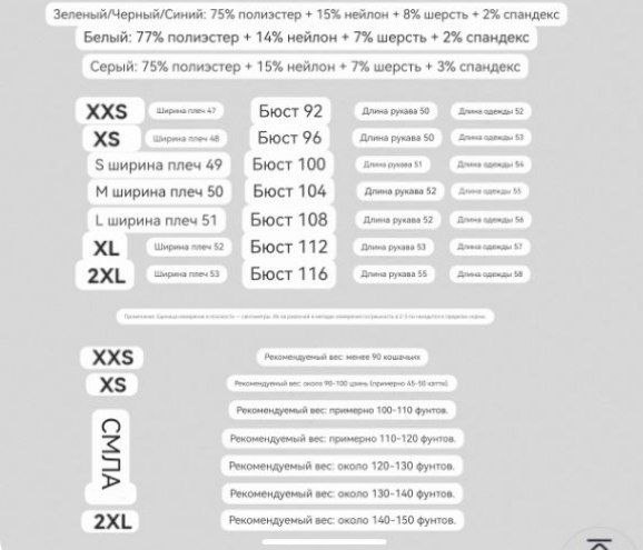 Материал: полиэстер, нейлон,шерсть, спандекс Нет в наличии Зеленый XL 2XS Серый 2XL Черный XL, 2XL Белый 2XS, 2XL Комментарии к товару