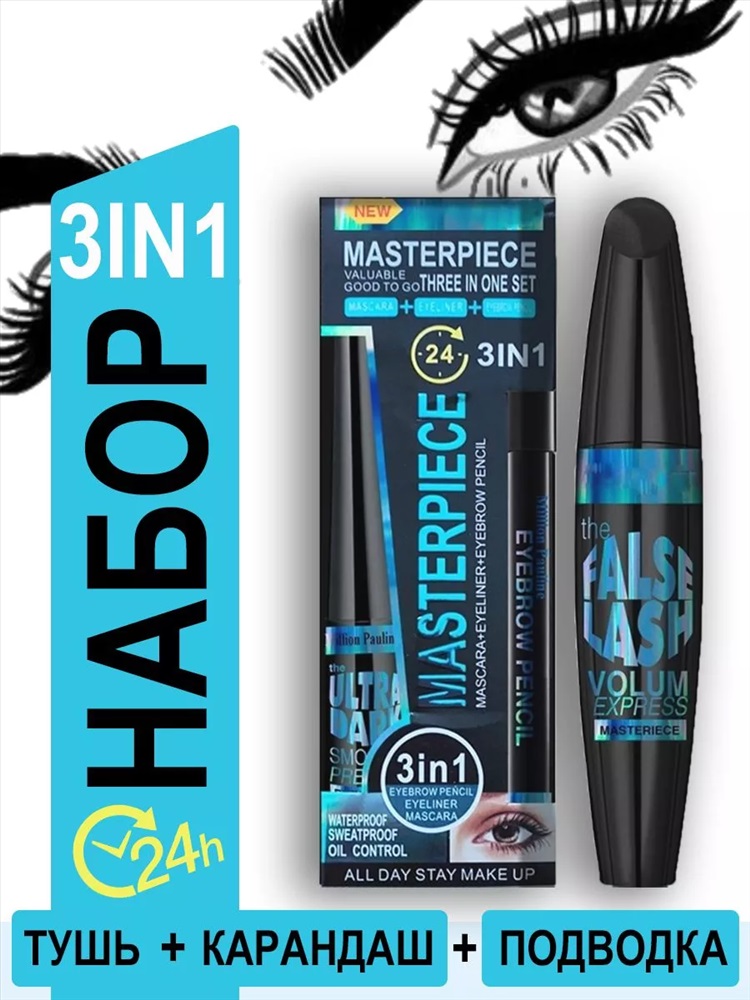 Скидка: любая | от 10% и больше Подарочный набор для макияжа женской декоративной косметики - отличный выбор для потрясающего образа. С этим набором косметики желание становится реальностью. Вы с лёгкостью создадите шедевр у себя дома! Включает в себя три средства: тушь для ресниц, подводка и карандаш для глаз. Тушь водостойкая визуально удлиняет ресницы, делает их более объемными, а специальная щеточка позволит придать элегантный изгиб, что визуально увеличивает глазки, имеет однородную консистенцию, наносится равномерно, без образования комочков и не утяжеляет веко. Прорезиненная инновационная щетка имеет тонкие щетинки разного типа, которые идеально прокрашивают и разделяют даже самые тонкие волоски. Жидкая подводка поможет легко и быстро подчеркнуть взгляд, сделать его более выразительным, легко наносится, как на кожу, так и поверх теней, быстро сохнет и стойко держится. У лайнера вместо пористого стержня на конце тонкая прочная кисточка, выполненная из натурального материала. Подводка-штамп позволяет создать как естественный, так и яркий образ. Устойчивая текстура, обеспечивает комфортное нанесение и сверхбыстрое высыхание всего за несколько секунд, что исключает возможность отпечатывания на веке. Карандаш для век сделает Ваш образ неповторимым, он не осыпается, хорошо растушевывается подходит также для бровей. Благодаря мягкой текстуре он легко растушевывается в течении нескольких секунд после нанесения, не царапает веко, не растягивает кожу.