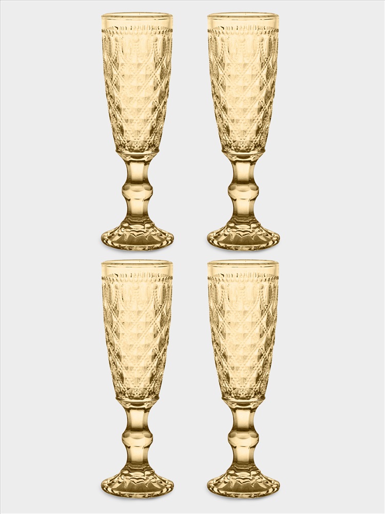 Бокал для шампанского, 4 штуки. Объем: 150 мл. Материал: стекло рифленое. Соответствует требованиям ГОСТ 30407-2019 (п.п.5.1.3, 5.1.4, 5.1.16, 5.1.19, 5.1.25, 5.2,) ГОСТ Р ИСО 6486-2-2007, ГОСТ Р ИСО 7086-2-2016. Мыть вручную мягкими моющими средствами. Не использовать в микроволновой печи и посудомоечной машине. Беречь от прямых солнечных лучей.
