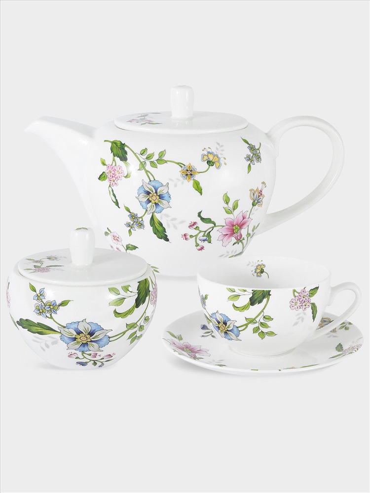 Сервиз чайный, 6 перс, 14 пр, фарфор F, белый, Цветы, Provence. Материал: фарфор Fine Bone China. Мыть тёплой водой с применением жидких моющих средств и в посудомоечной машине. Можно использовать в СВЧ.