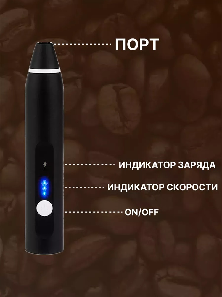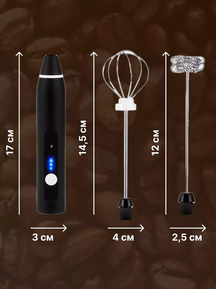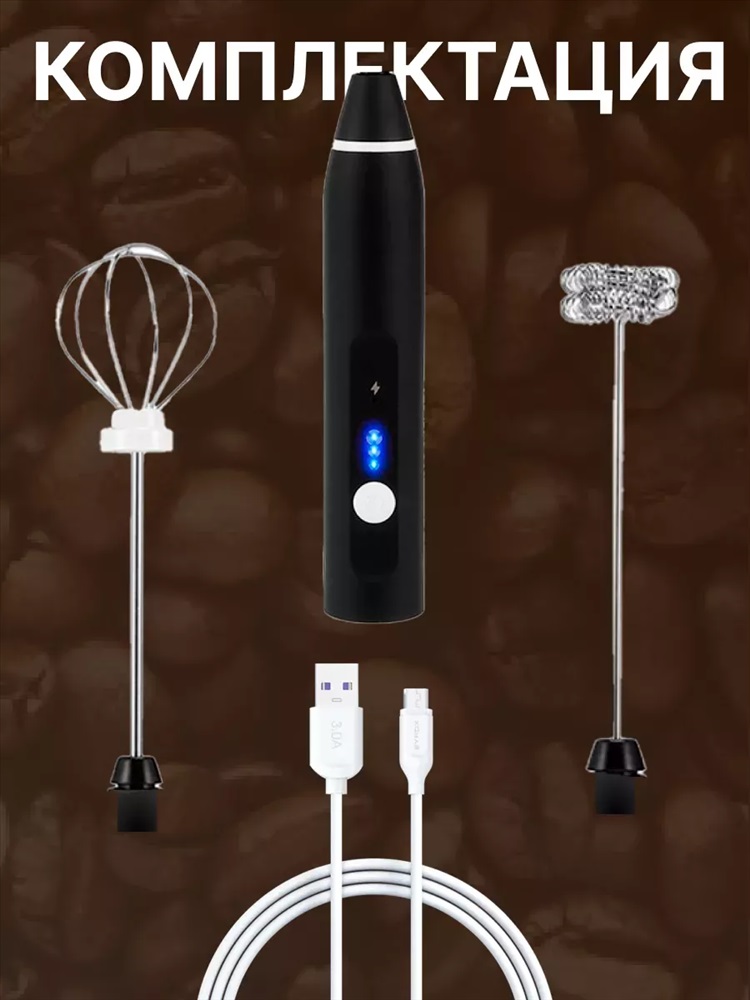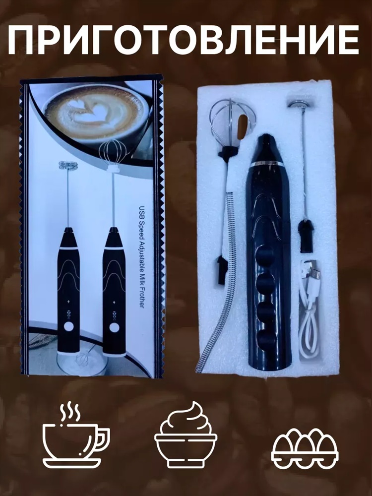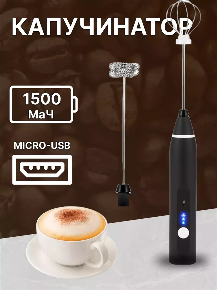 Бренд: Без бренда .еспроводной капучинатор - это компактный и мощный электрический вспениватель молока на аккумуляторе, который поможет Вам в создании густой пенки для ароматных напитков как латте, капучино, раф, а можно делать коктейли или протеин. Управление капучинатором очень простое и делается всего одной кнопкой: одно нажатие - ВКЛ на 1 скорости, еще одно нажатие - средняя скорость, еще одно нажатие высокая скорость. ВЫКЛ - нажать и удерживать 2 сек. 2 насадки в комплектке: насадка 1: идеально подойдет для взбивания молока. насадка 2: идельно для взбивания яиц. Смена насадок очень простая: для этого одной рукой держите капучинатор, а второй рукой слегка потяние насадку вверх и насадка выйдет из паза. Для установки другой насадки совместите пазы капучинатора с пазами насадки и вставьте до легкого щелчка.