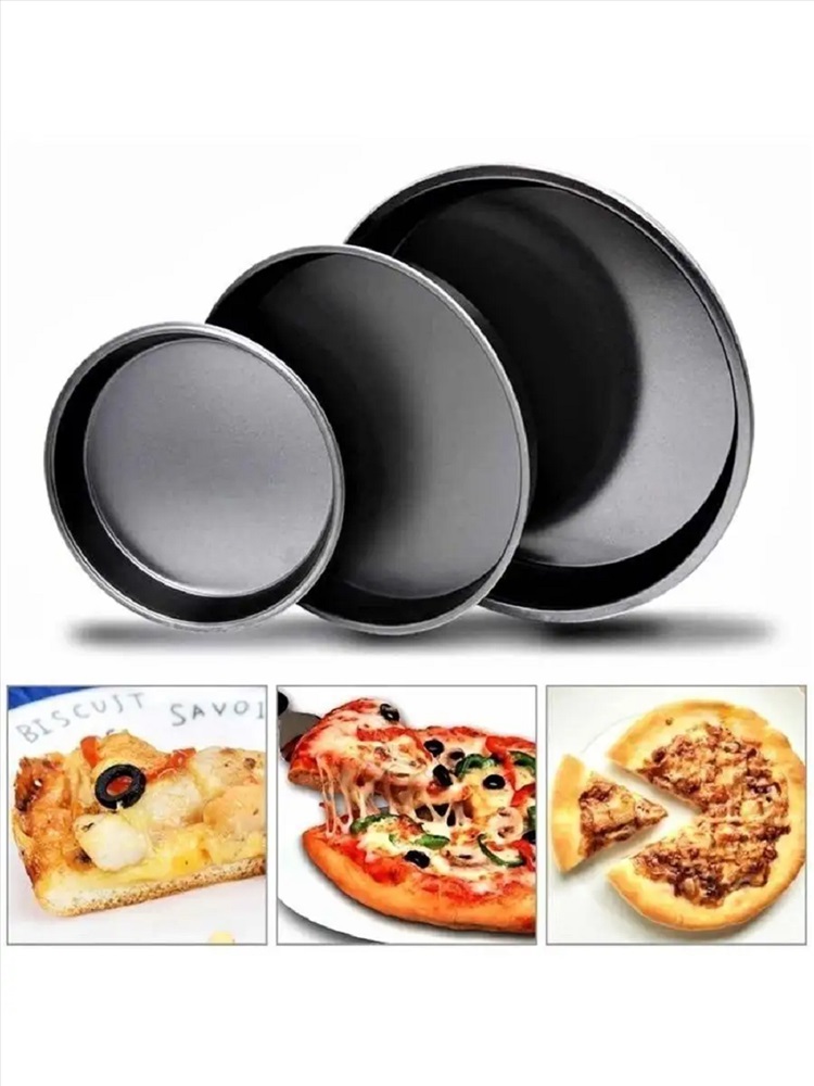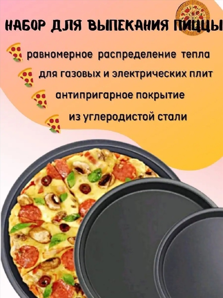 Тип товара: форма для выпечки Круглые формы для пиццы изготовлены из углеродистой стали с антипригарным покрытием. Покрытие экологичное и безопасное для здоровья. В наборе 3шт. Размеры: 26, 29, 32см. Благодаря антипригарному покрытию нет необходимости использовать подсолнечное масло. Пища не пригорает и не прилипает к стенкам, легко достается из формы, сохраняя при этом аккуратный внешний вид. Изделие прослужит долго и обеспечит легкое и удобное приготовление вашей любимой пиццы. Формы разного диаметра позволят приготовить дома вкусную и ароматную пиццу. Особенности: приподнятые края для безопасной пиццы/запеченные хорошо на месте и для легкого захвата, антипригарное покрытие для легкого снятия и быстрой очистки, профессиональная конструкция из весовой стали обеспечивает равномерное нагревание для оптимальных результатов выпечки. Подходят как для газовых, так и для электрических плит.