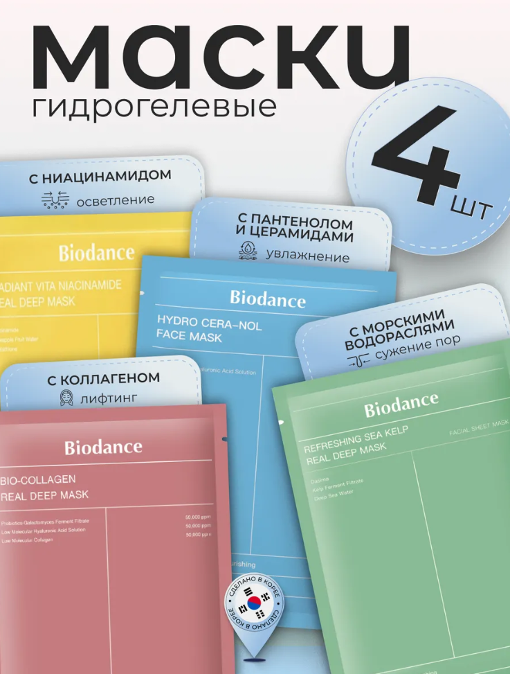 Набор гидрогелевых масок для лица Biodance ( 4 шт)