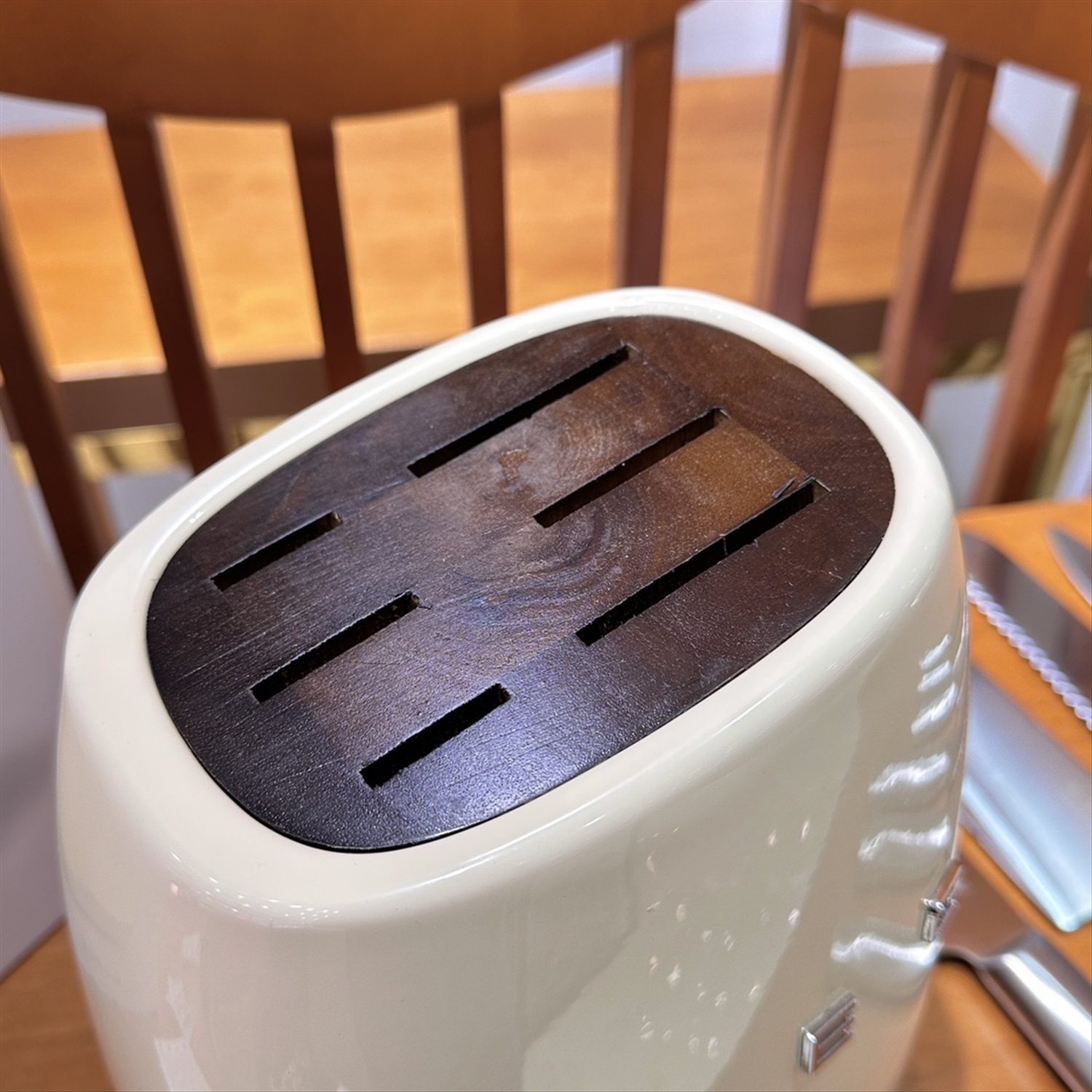 Набор из 7 предметов для ретро-ножей SMEG Blue Knife, потолок стоимости ножей Нож изготовлен из импортной нержавеющей стали марки 304, которая безопасна, полезна для здоровья, долговечна и износостойка. Интегрированная ручка очень удобна и легка в использовании. В комплект входят универсальный нож, нож для мяса, нож сантоку, нож для хлеба, поварской нож и подставка для ножей, всего 7 предметов!