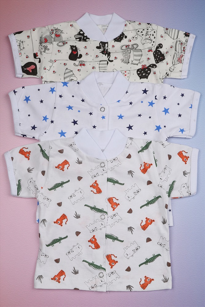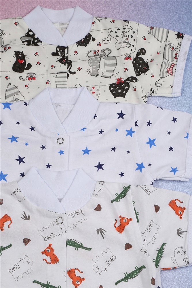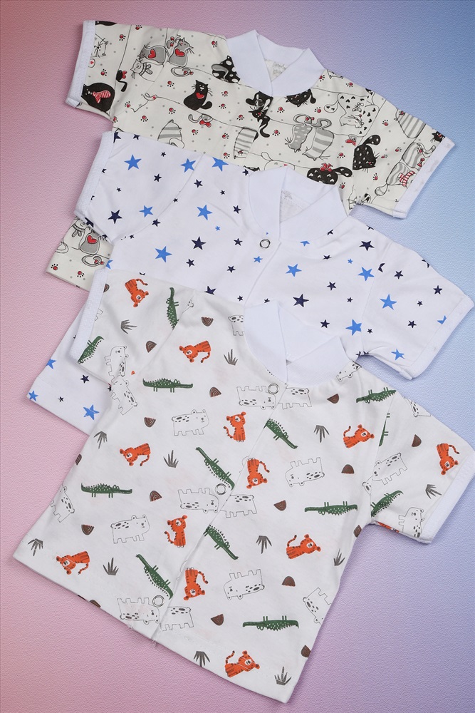Застежка: кнопка Комплект кофточек для малышей с коротким рукавом и разнообразной расцветкой -это отличный набор для выписку. Кофточки для новорожденных на кнопках изготовленных из 100 % хлопка. Одежда для новорожденных младенцев высокого качества, ткань мягкая и нежная. Удобные и практичные кофты для малышей свободного кроя, не сковывают движения и предназначены для повседневной носки. Эти детские распашонки-кофточки из мягкого трикотажа подойдут как для девочек, так и для мальчиков. Веселые расцветки позволяют легко комбинировать их с другой одеждой. Особенностью модели является долгая эксплуатация, которая выдержит множество стирок и ежедневное использование, благодаря этому материал отлично сохраняет изначальную форму, ткань не линяет и не выцветает. Нейтральные расцветки подойду как для мальчика, так и для девочки. В упаковке 3 шт. кофточек для детей разных цветов одного размера. Распашонки для новорожденных - идеальная одежда для первого гардероба малыша. ВНИМАНИЕ Расцветки в наборе могут отличаться от представленных на фото!