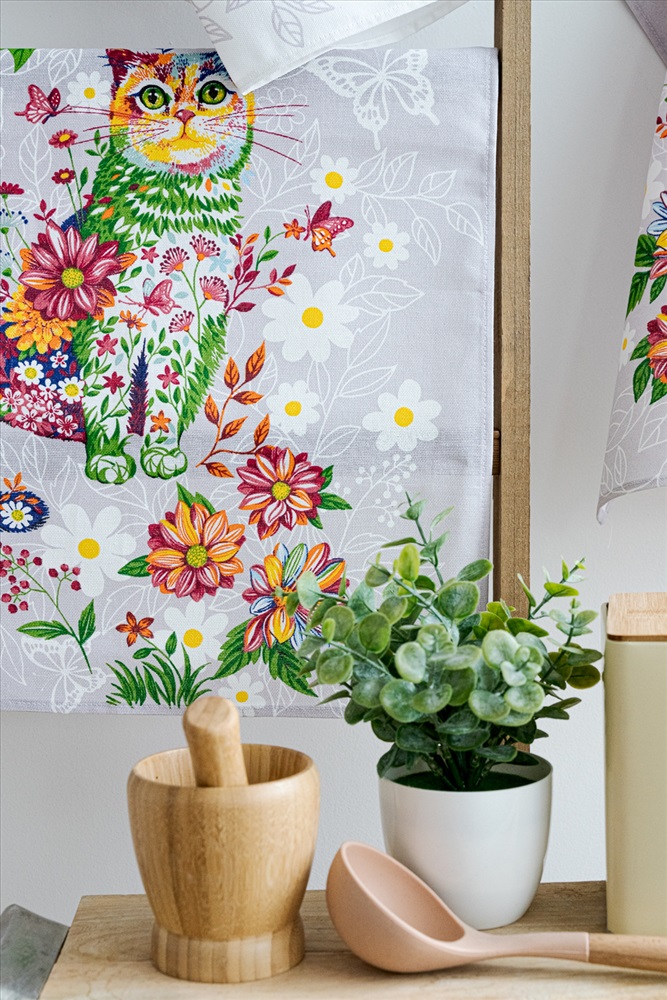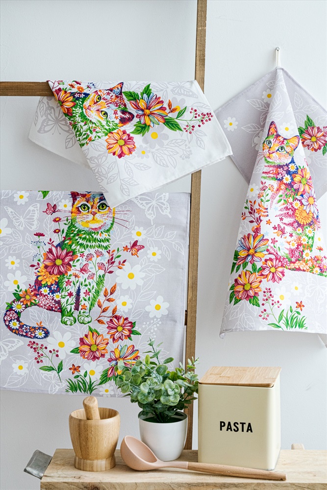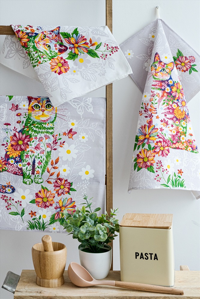 Состав: 100% хлопок Модель: Набор полотенец Чудесный день Тип товара: полотенце кухонное Материал: рогожка | рогожка Бренд: Натали Суслова Назначение: для кухни Рисунок: цветы | узоры | зверюшки Сезонность: лето | осень | весна | зима Яркий набор из трех полотенец с цветочным принтом и кошечками способен поднять настроение даже в самый тоскливый день. Забавные изображения разноцветных кошек в цветах создают атмосферу легкости и уюта. Полотенца размером 60*48 выполнены из рогожки отличного качества. Изделия сохраняют первоначальный вид, не теряют форму и цвет даже после многочисленных стирок. Полотенца отлично впитывают влагу и быстро сохнут. К каждому полотенцу пришита петелька. Кухонный набор Чудесный день может служить готовым подарком для близких и коллег. Таблица размеров и веса