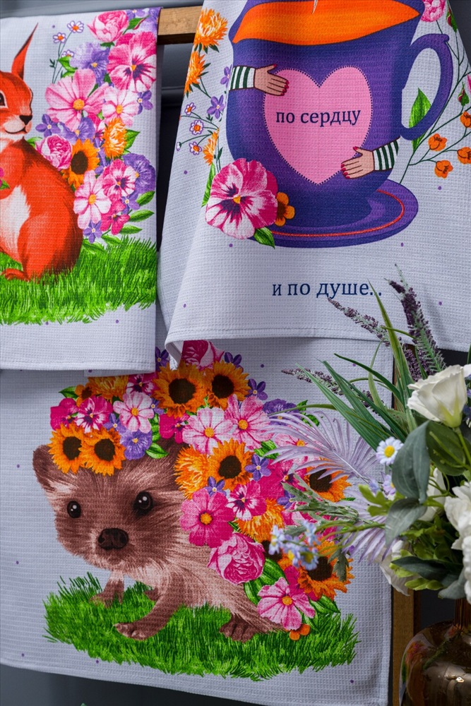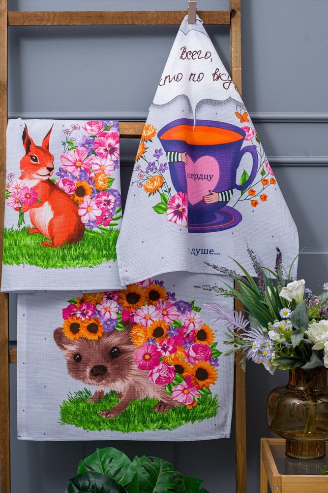 Состав: 100% хлопок Модель: Набор полотенец Цветочное настроение Тип товара: полотенце кухонное Материал: вафельное полотно | вафельное полотно Бренд: Натали Суслова Назначение: для кухни Рисунок: цветы | зверюшки Сезонность: лето | осень | весна | зима Этот набор кухонных полотенец Цветочное настроение - идеальное дополнение к вашей кухне. В наборе представлены 3 полотенца серого цвета с яркими цветами. Два полотенца украшены милыми изображениями белки и ежика, которые придадут вашей кухне уют и тепло. Размер каждого полотенца составляет 60*48 см, что делает их удобными в использовании. Кроме того, каждое полотенце оснащено петелькой для удобного хранения и подвешивания. Эти полотенца отлично впитывают влагу и быстро сохнут, что делает их идеальным выбором для использования на кухне. Благодаря своим качественным характеристикам, они прослужат вам долгие годы. Набор кухонных полотенец Цветочное настроение также отлично подойдет в качестве подарка на 8 марта - это практичный и красивый подарок, который порадует любую хозяйку. Не упустите возможность приобрести этот уникальный набор кухонных полотенец и добавьте немного цвета и радости в свою кухню! Таблица размеров и веса