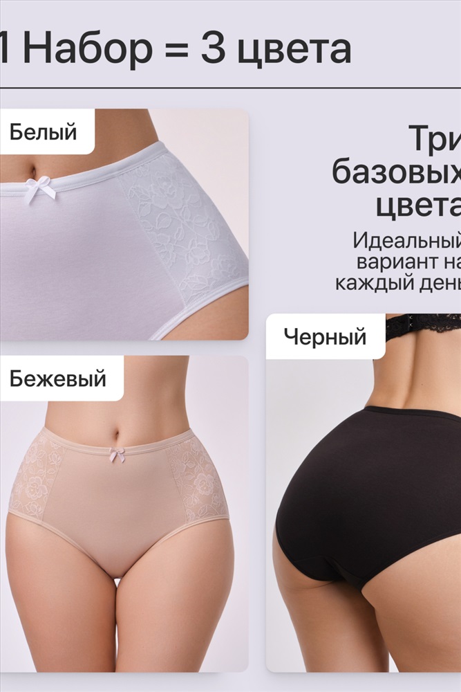 Сезонность: лето | осень | весна | зима Трусы хлопковые. Набор 3 шт. Идеальны для ежедневного использования. Удобные и практичные.