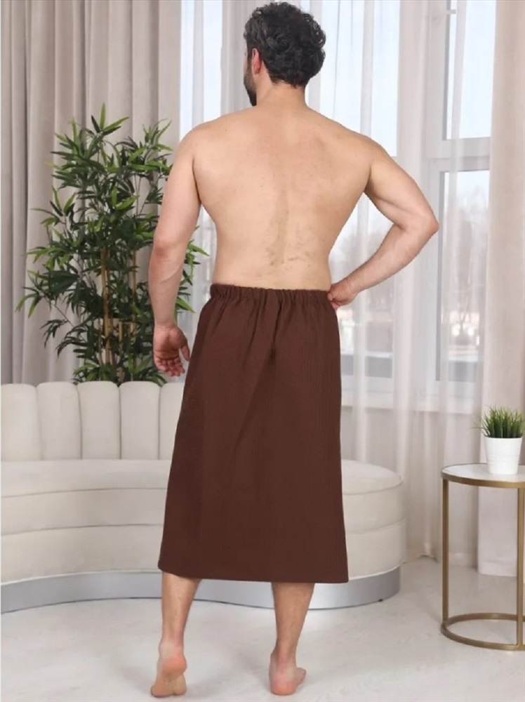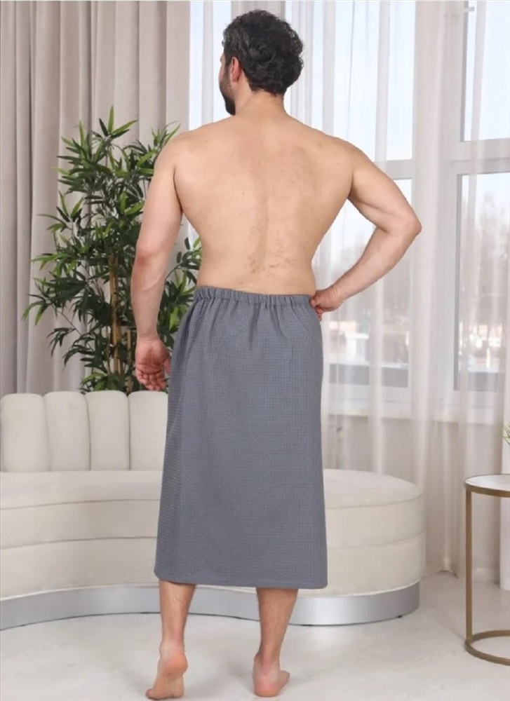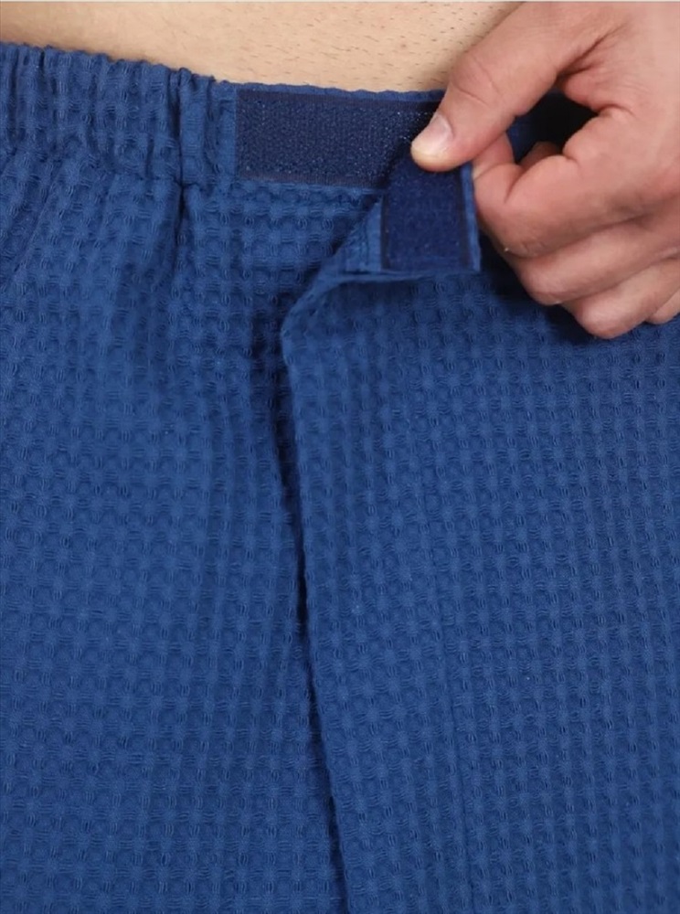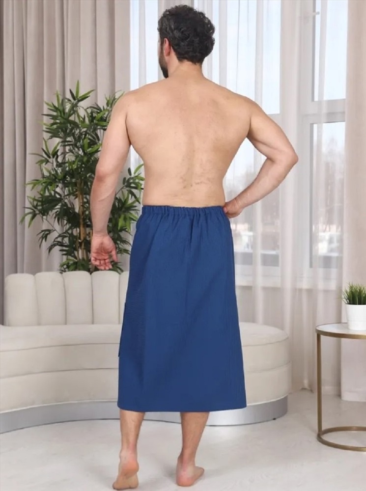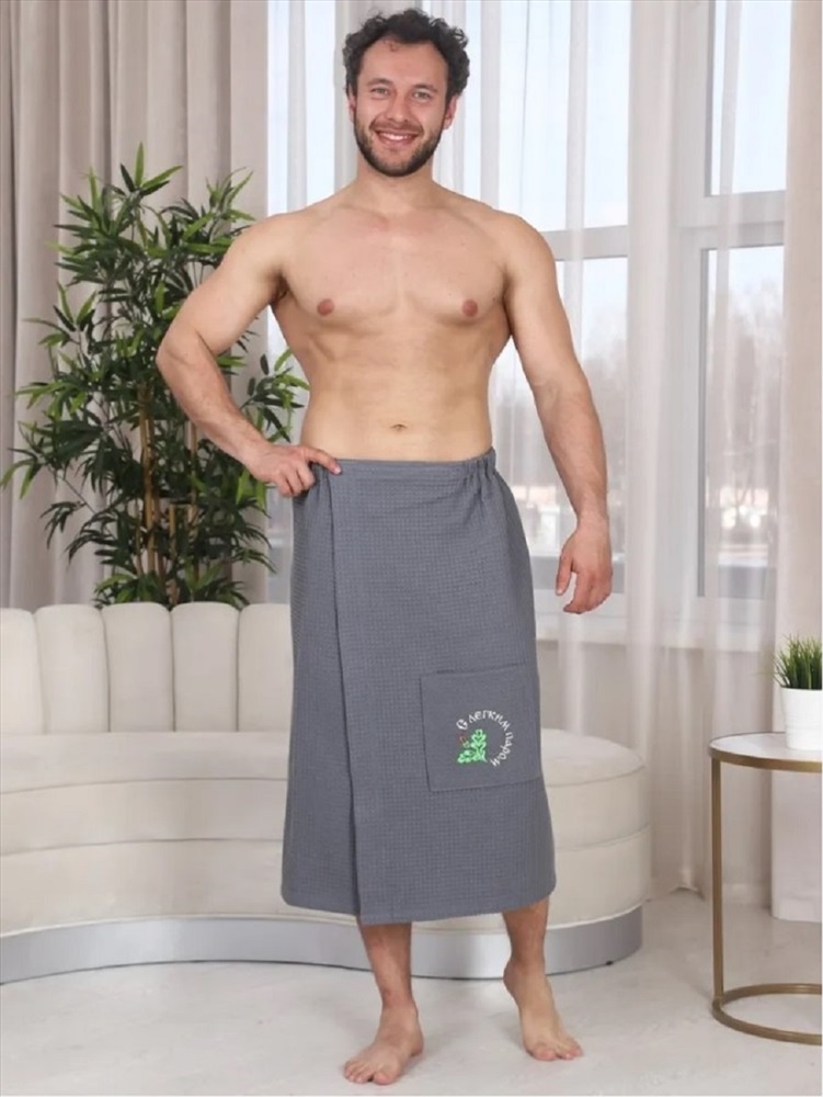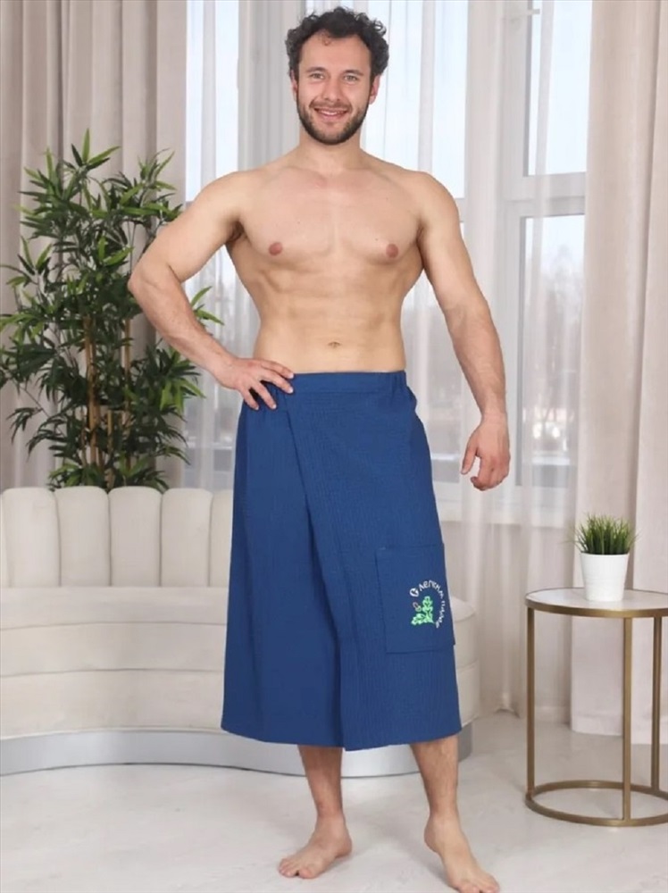 Застежка: на запах Килт банный мужской вафельный с вышивкой - полотенце-накидка на липучке для сауны и бани. Материал: высококачественное вафельное полотно, 100% хлопок. Плотность: 220 г/м2. Набедренное полотенце отлично держится за счет резинки и фиксации на широкую липучку. Килт для мужчин универсально подходит для любой комплекции с 44 по 52 размер. Имеется глубокий накладной карман с вышивкой С легким паром для хранения различных банных мелочей. Изделие приятно к телу, прекрасно впитывает влагу, быстро сохнет, хорошо переносит частые стирки, отличается долговечностью и прочностью. Это многофункциональный аксессуар, который обеспечит комфорт и удобство, а также гигиеническую защиту во время и после банных процедур. Килт можно постелить на лежак в сауне или использовать в качестве полотенца после душа, он удобен в массажном салоне или на пляже. Это замечательный подарок для мужчины - любителя парной, хаммама, сауны, бани, различных spa - комплексов! Рост модели на фото: 180 см. Размеры 44-52: Длина - 80 см, Ширина 154 см (+/- 1 см)