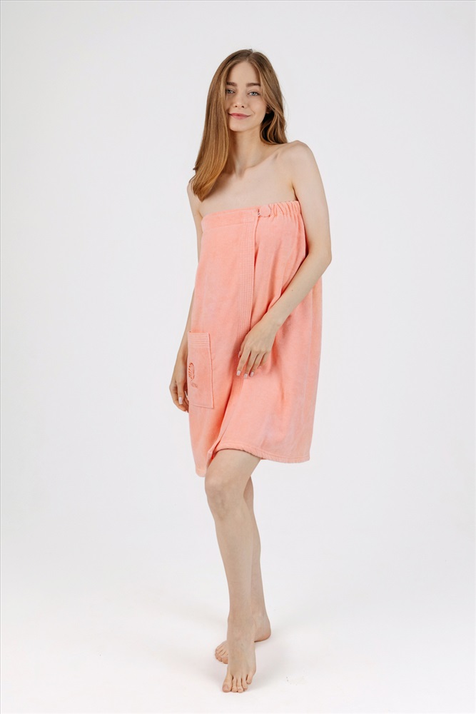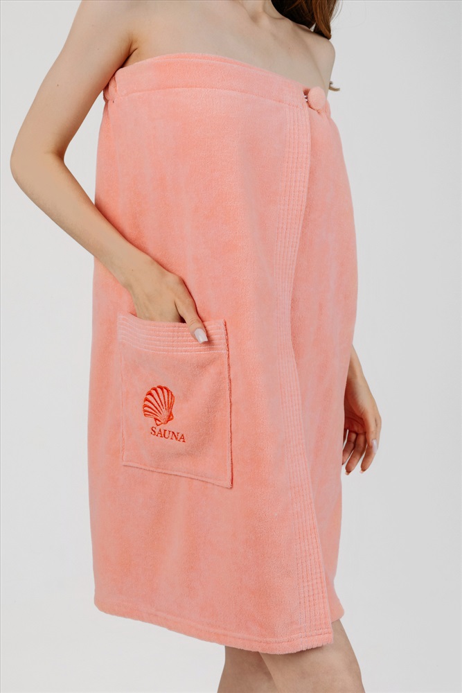 Застежка: на запах Привлекательное и качественное полотенце-накидка на пуговице для посещения сауны и бани. Материал: натуральный хлопковый велюр с мягкой махровой (петельчатой) изнанкой. Плотность: 360 г/м2, вес: 500 г. Состав: 100% хлопок. Велюровая накидка банная для женщин отлично держится на теле за счет резинки и пуговицы, одинаково удобно подходит для любой комплекции с 44 по 52 размер, а также с 54 по 60 размер, имеет глубокий накладной карман с вышивкой для хранения женских мелочей. Интересный дизайн в сочетании с бархатистой фактурой ткани создает стильный и женственный образ. Килт на пуговице прекрасно впитывает влагу, хорошо переносит частые стирки и быстро сохнет, при этом выглядит благородно и дорого. Изделие обеспечит комфорт и гигиеническую защиту во время и после банных процедур. Килт можно постелить на лежак в сауне или использовать в качестве полотенца после душа, он удобен в массажном салоне или на пляже. Это замечательный подарок для женщины - любительницы парной, хамама, сауны, бани, различных spa - комплексов! Рост модели на фото - 175 см. Размер 44-52: Длина - 74 см, Ширина 146 см (+/-1см) Размер 54-60: Длина - 77 см, Ширина 167 см (+/-1см)