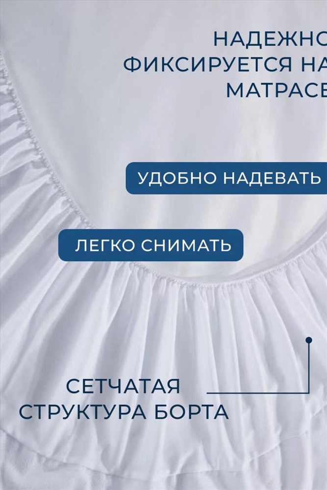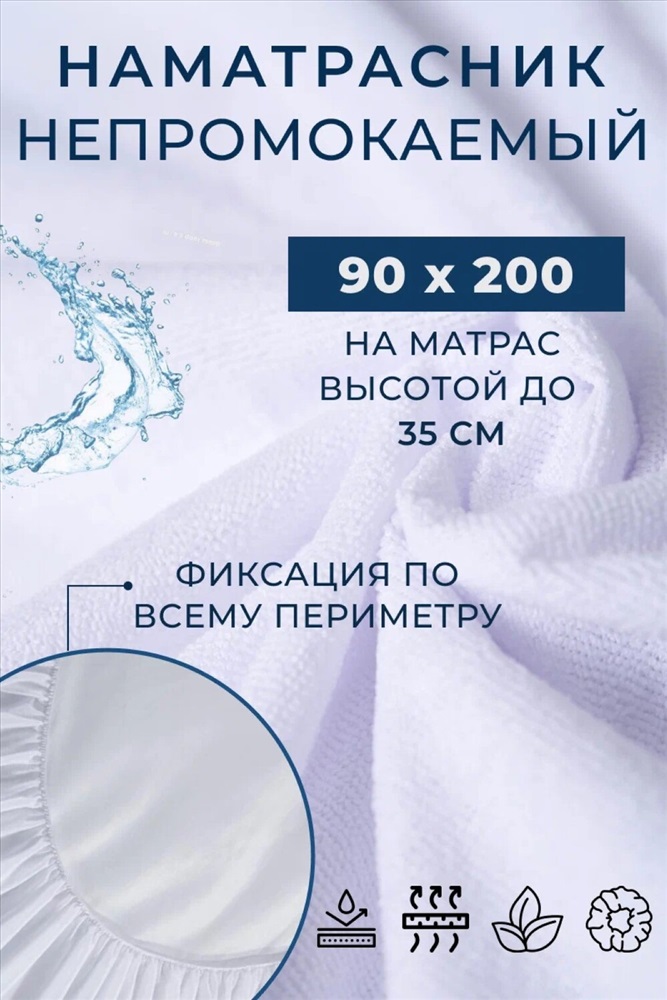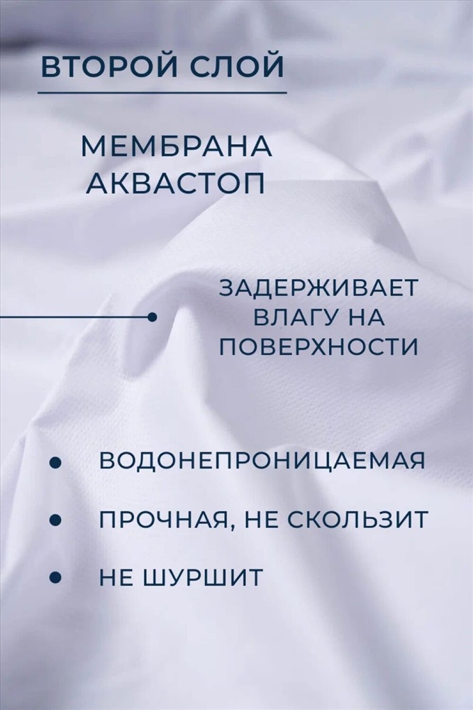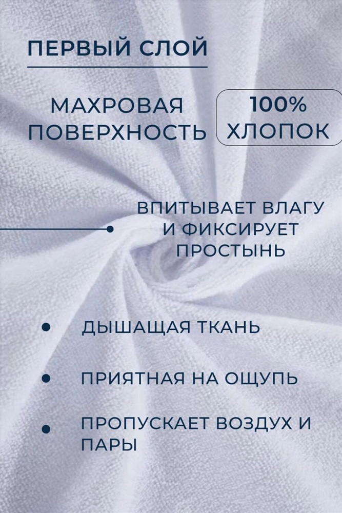 Состав: 80% хлопок, 20% полиэстер Модель: Наматрасник MERCANA непромокаемый на резинке, защитный борт высотой 35 см Тип товара: наматрасник Материал: махра | мулетон | махра | мулетон Бренд: Мерцана Фиксация: на резинке Назначение: для спальни НДС: 5% Рисунок: однотонные Сезонность: лето | осень | весна | зима Наматрасник MERCANA представляет собой надежное и практичное решение для защиты вашего матраса от различных загрязнений и повреждений. Благодаря своим размерам, он подходит для разных по ширине кроватей и диванов. Качественные материалы и водонепроницаемость Наматрасник выполнен из качественных материалов: внешний слой из хлопка, а внутренний из водонепроницаемой мембраны. Это обеспечивает непроницаемость для влаги и жидкости, а также позволяет воздуху свободно циркулировать, предотвращая парниковый эффект. Особенностью данного наматрасника является его способность удерживать чехол на матрасах разной высоты. Это достигается благодаря эластичной трикотажной структуре боковых частей и резинке по периметру. Комфорт и долговечность использования С лицевой стороны наматрасник имеет приятную к телу впитывающую махровую поверхность из мягкого трикотажа, а с изнанки - прочное водонепроницаемое мембранное покрытие. Это обеспечивает комфорт и долговечность использования. Наматрасник легко стирается при температуре 40 градусов, сохраняя свои свойства на протяжении длительного времени. В целом, данный наматрасник станет отличным выбором для тех, кто ценит комфорт, долговечность и защиту своего матраса от различных негативных воздействий. Таблица размеров и веса