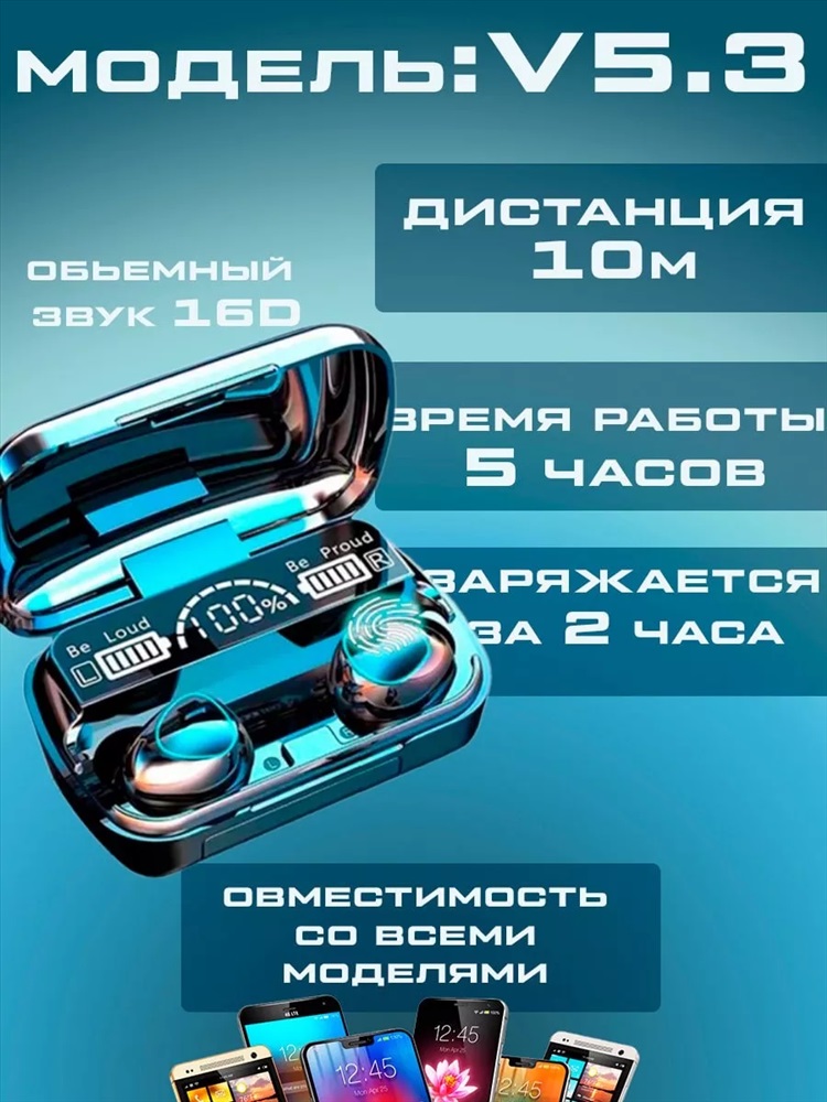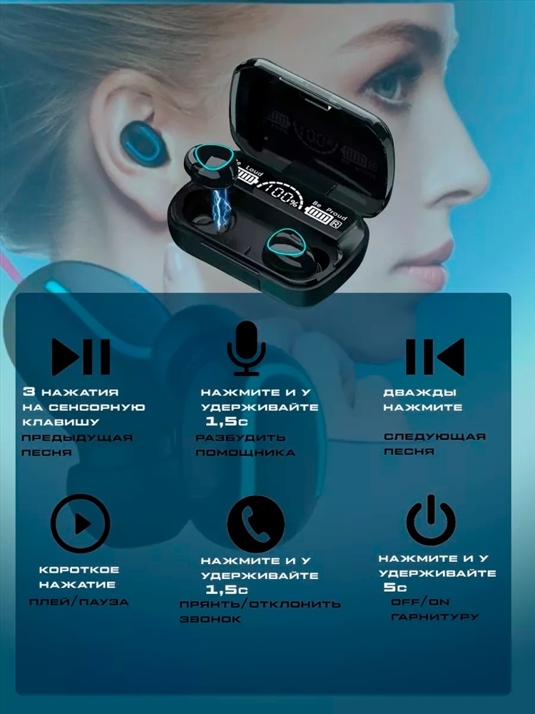 Скидка: любая | от 10% и больше Наушники беспроводные TWS М10 это стильное и надёжное устройство для прослушивания музыки в повседневной жизни. Наушники игровые выполнены из качественного гипоаллергенного пластика, отличаются компактными размерами и стильным дизайном. Форма наушников разработана с учётом анатомических особенностей человеческого уха, также в комплекте есть набор амбушюр и мягкого медицинского силикона разных размеров, вам необходимо только подобрать, какие для вас более комфортны. Беспроводные наушники можно использовать, как гарнитуру они оснащены микрофоном с эффектом шумоподавления, больше ничего не будет отвлекать вас от общения, даже шумная улица или сильный ветер. Наушники с эффектом присутствия и игровым режимом позволят вам погрузиться в игру или в любимый фильм и испытать совершенно новые ощущения и эмоции как в виртуальной комнате. Подключение наушников осуществляется при помощи современного модуля Bluetooth- 5,2, он обеспечивающий более быстрое и бесперебойное сопряжение, как вашего телефона с гарнитурой, так и моментальное соединение наушников между собой. Они довольно долго держат заряд от 6 до 8 часов в рабочем режиме, а для подзарядки им требуется всего 30-40 минут. Также каждый наушник может работать автономно, пока второй подзаряжается.