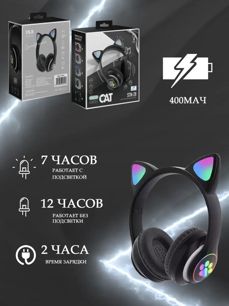 Скидка: любая | от 10% и больше Стильный дизайн со светящимися ушками и лапками кошки Могут работать по Bluetooth или автономно. Беспроводные наушники Cat Ear P33M имеют качественное стереозвучание, встроенный аккумулятор. Большие и мягкие амбушюры гарантируют отличное звучание Вашей любимой музыке даже в очень шумном помещении. Интересный и яркий дизайн! Отличительной чертой наушников является светодиодная подсветка декоративных ушек и самих наушников. Это вызовет восторг друзей и не оставят Вас без внимания окружающих.