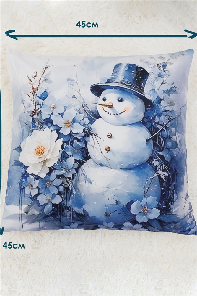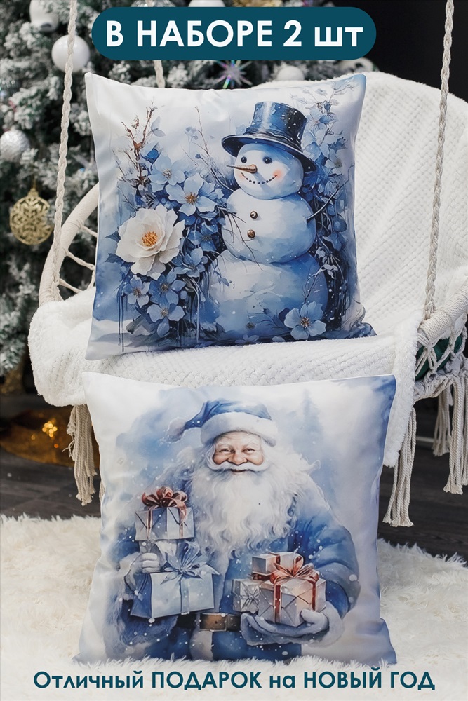 Модель: Наволочки Дед мороз и снеговик синий 2 шт велюр