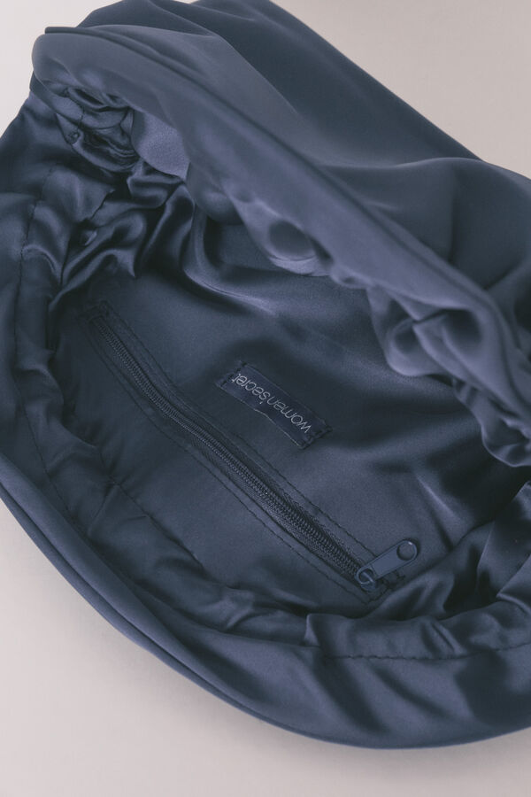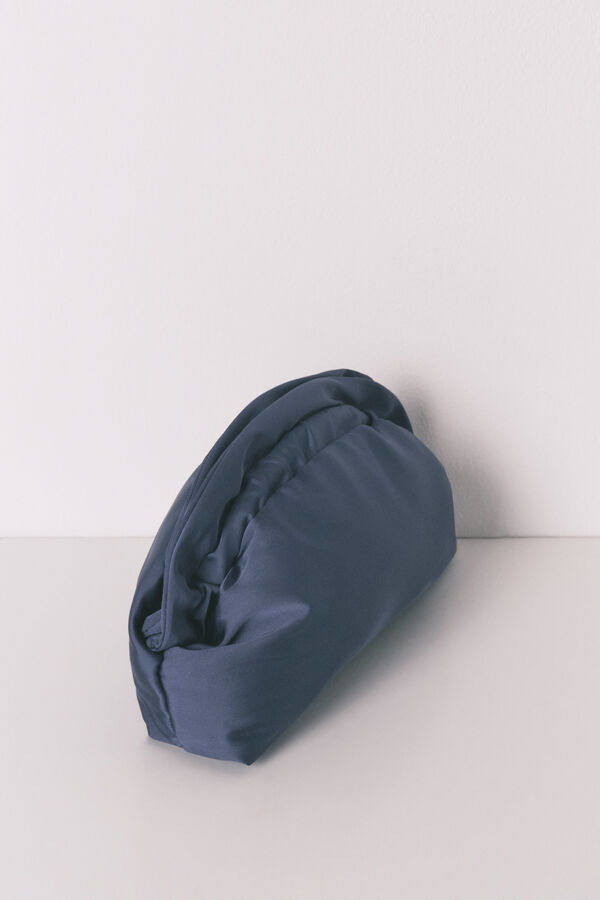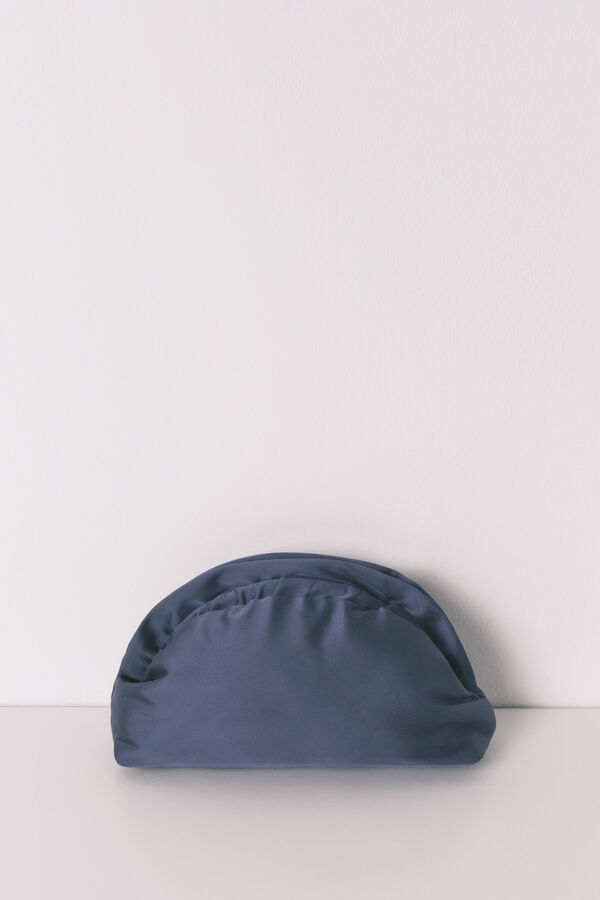 Neceser mediano tipo monedero confeccionado en acabado efecto satén de color azul y con cierre de sobre.