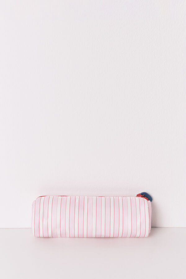 Neceser pequeño acolchado, en nylon estampado en color rosa y rojo y con licencia de Snoopy. Perfecto para llevar contigo todos tus básicos beauty, en el bolso o de viaje. Medidas: 6x20x6 cm.