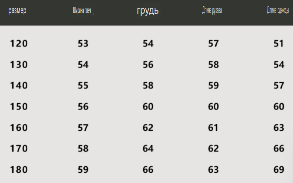 Размер: 120, 130, 140, 150, 160, 170
