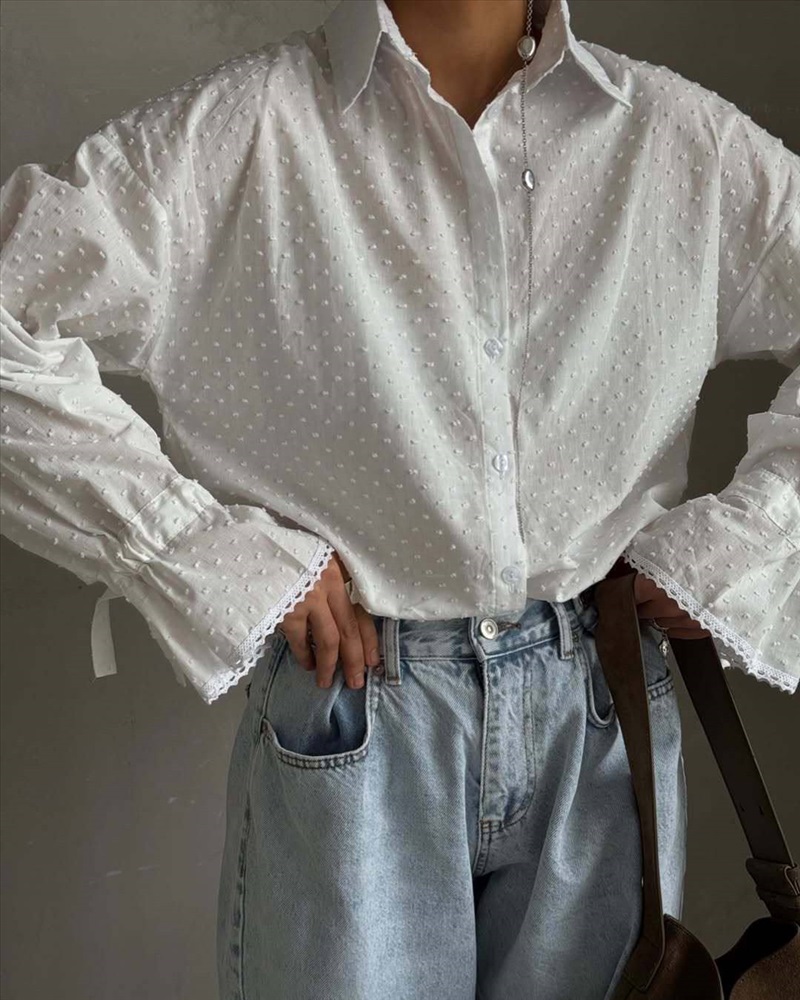 Нежная рубашка с завязками на рукавах