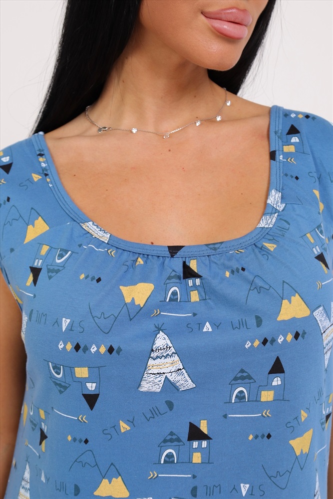 Состав: 100% хлопок Модель: Ночная сорочка 222 Тип товара: сорочка Материал: кулирка | кулирка Бренд: Моя любовь Назначение: для дома НДС: Без НДС Отделка: с воланами Рисунок: разное Рукав: без рукава Сезонность: лето | осень | весна | зима Силуэт: свободный Стиль: домашний Сорочка ночная свободного силуэта без рукава. По низу волан. Горловина обработана кантом с небольшой драпировкой. Таблица размеров и веса