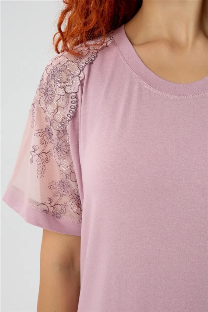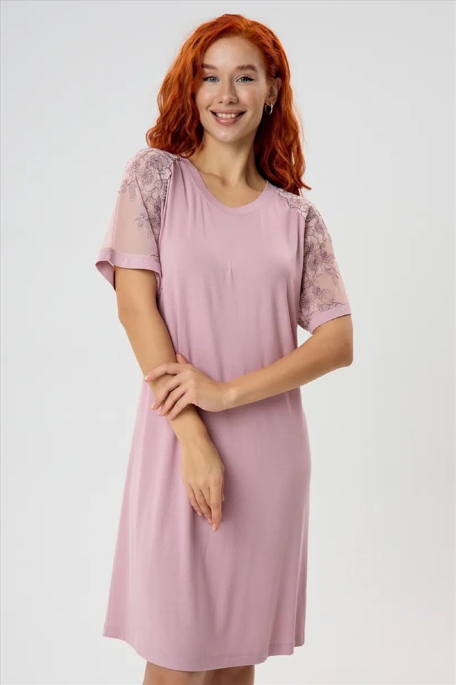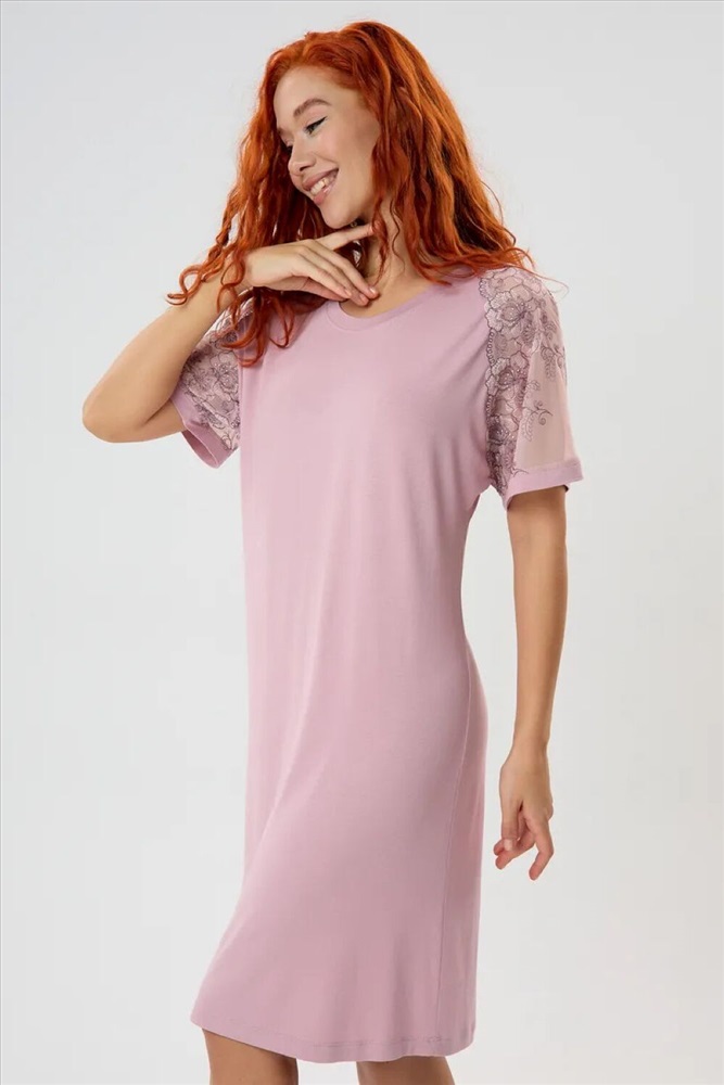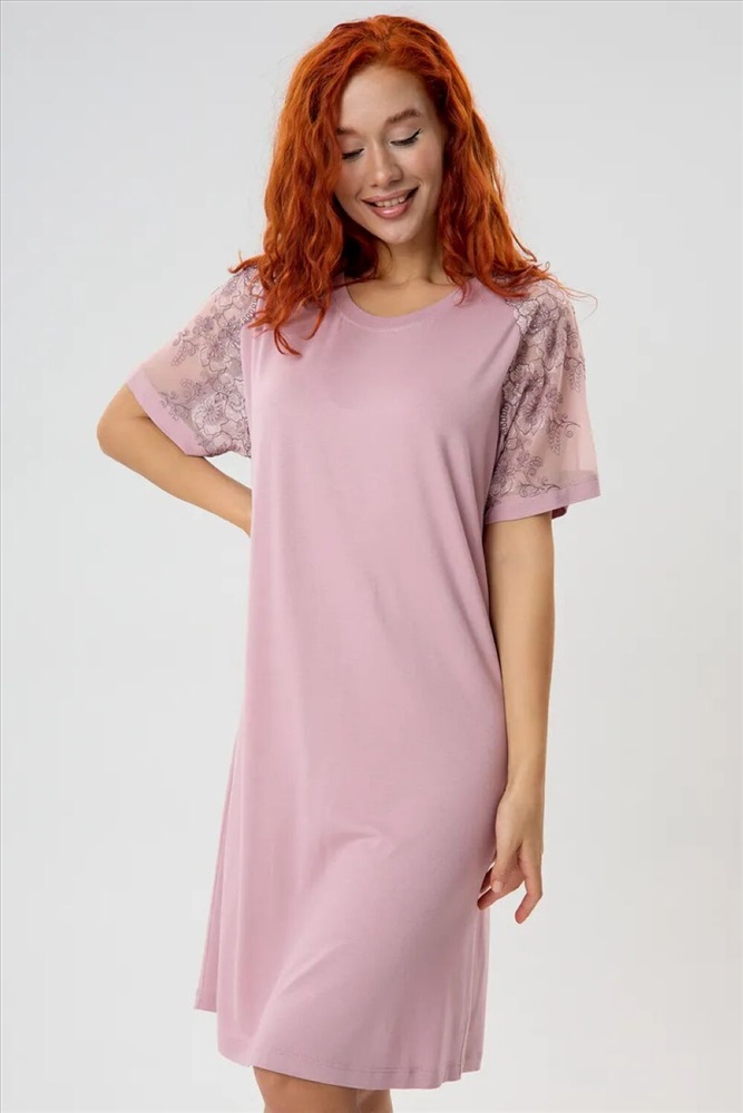 Застежка: без застежки Ночная сорочка из вискозы станет незаменимой частью вашего гардероба для комфортного и стильного отдыха. Длина изделия чуть ниже колена обеспечивает оптимальное удобство и свободу движений, а округлый вырез горловины придает образу мягкость и женственность. Особое внимание привлекают рукава реглан, выполненные из эффектного кружева на сетке, добавляющие сорочке нотку романтичности и изящества. Свободный крой позволяет носить сорочку как будущим мамам, так и всем, кто ценит комфорт в сочетании с элегантностью. Большой размерный ряд позволит каждой женщине найти идеальный вариант, а трикотажная текстура ткани гарантирует идеальную посадку, благодаря своей способности хорошо тянуться и адаптироваться к особенностям фигуры.