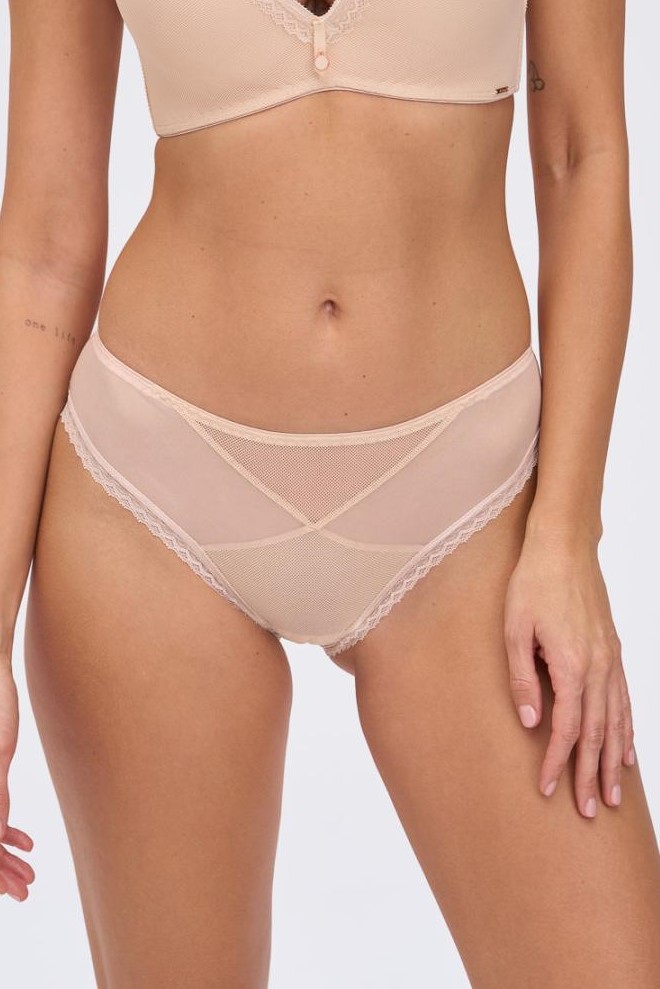 Состав: полиамид 75%, эластан 15%, хлопок 10% Трусики бразильяна из коллекции Nocturn выполнены из сетки, спереди продублированы телесной сеткой. Ластовица проложена 100% хлопком телесного цвета.