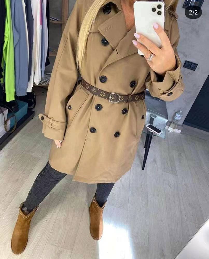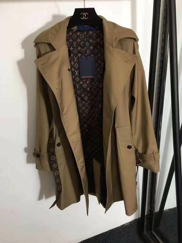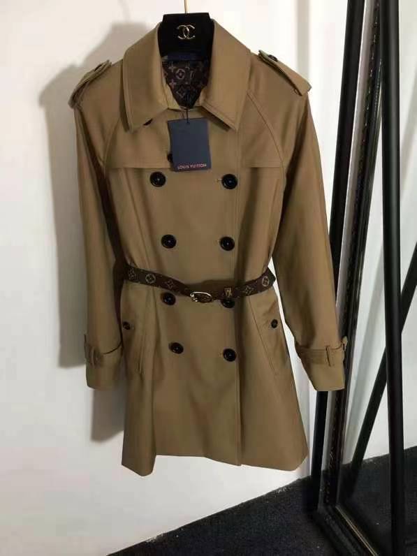 Номер модели 20220432 LV двубортная узкая ветровка с новой подкладкой для пресбиопии с логотипом и принтом для пресбиопии с поясом на талии, хаки, SML, [размер M; обхват груди 100, длина рукава 71