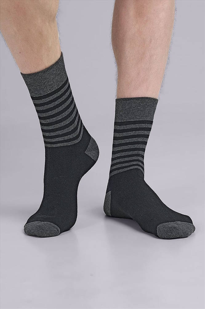 ID товара: 1048138 Состав: 70% Хлопок, 25% Полиамид, 5% Эластан Сезон: Демисезон Рисунок: Полоска Основная ткань: Хлопок Вид носков/гольф: Фантазийные Страна бренда: Россия Страна производства: Россия Теплые уютные плюшевые мужские носки с полосками на паголенке Комментарии к товару