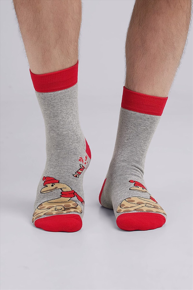 ID товара: 1060963 Состав: 80% Хлопок, 15% Полиамид, 5% Эластан Сезон: Осень/Зима Рисунок: Фантазийный Основная ткань: Хлопок Вид носков/гольф: Фантазийные Страна бренда: Россия Страна производства: Россия Новогодние мужские плюшевые носки с симоволом года- ЗМЕЯ, в игровом стиле Комментарии к товару