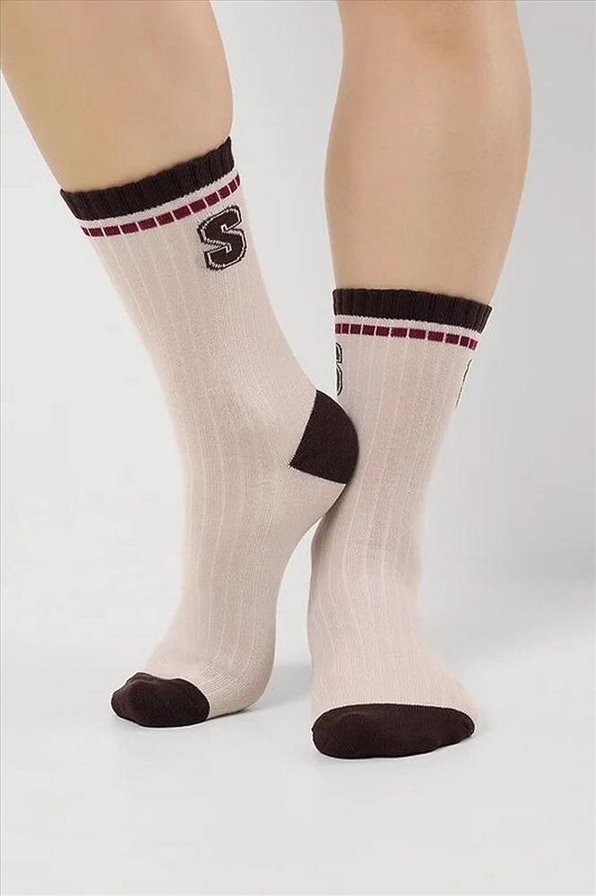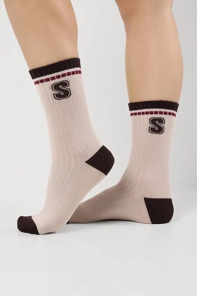 ID товара: 1136581 Состав: 70% Хлопок, 25% Полиамид, 5% Эластан Сезон: Демисезон Основная ткань: Хлопок Вид носков/гольф: Фантазийные Страна бренда: Россия Страна производства: Россия Носки женские с выделенным цветом мыском и пяткой, с буквой S Комментарии к товару